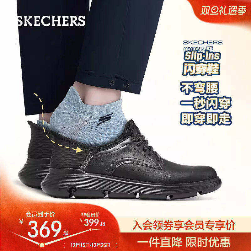 斯凯奇闪穿鞋秋冬新款男子舒适商务鞋一脚蹬休闲鞋通勤皮鞋工作鞋