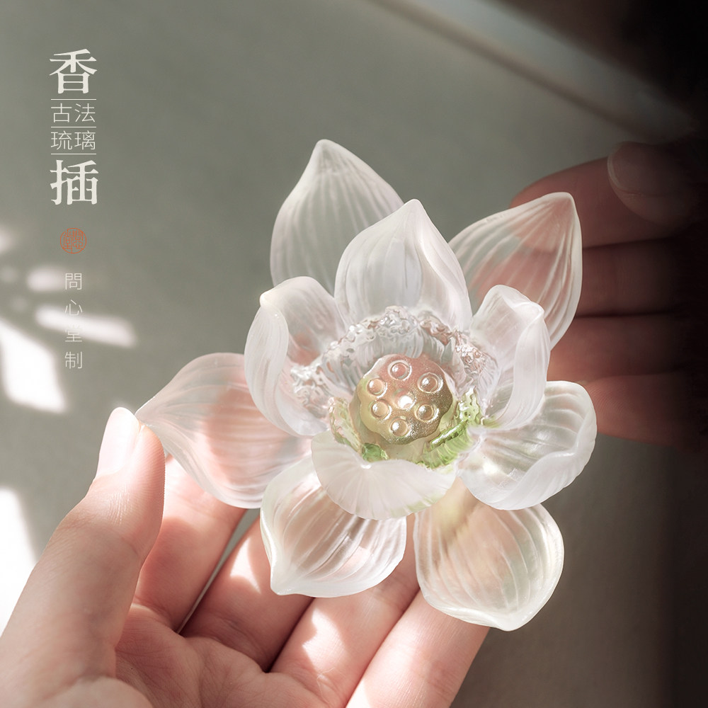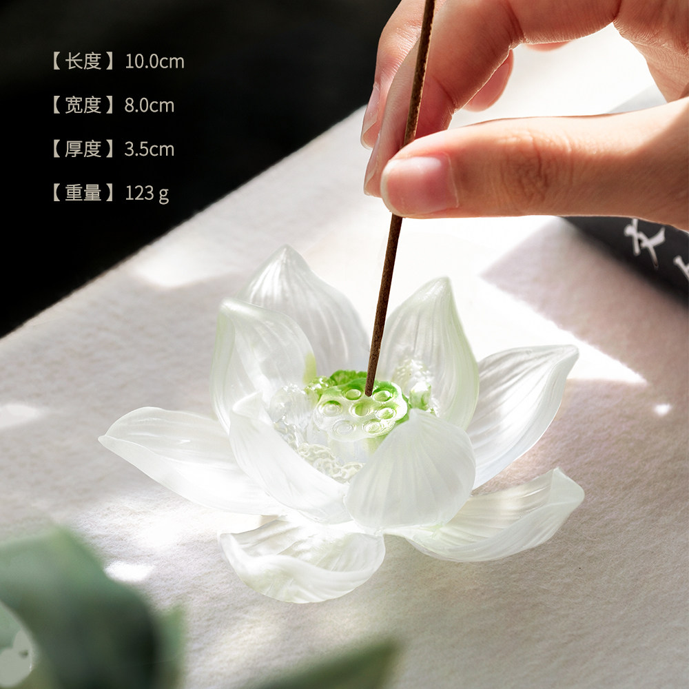 问心堂古法琉璃香插莲花香插文房纸镇家用室内沉香熏香炉香座香盘香道摆件
