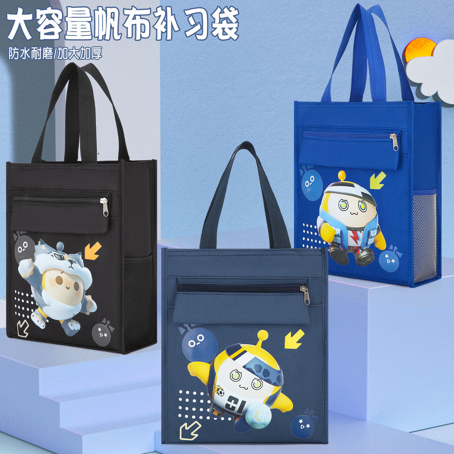 皮卡丘儿童补习袋小学生手提包美术袋拎书袋斜挎包男女补课书包