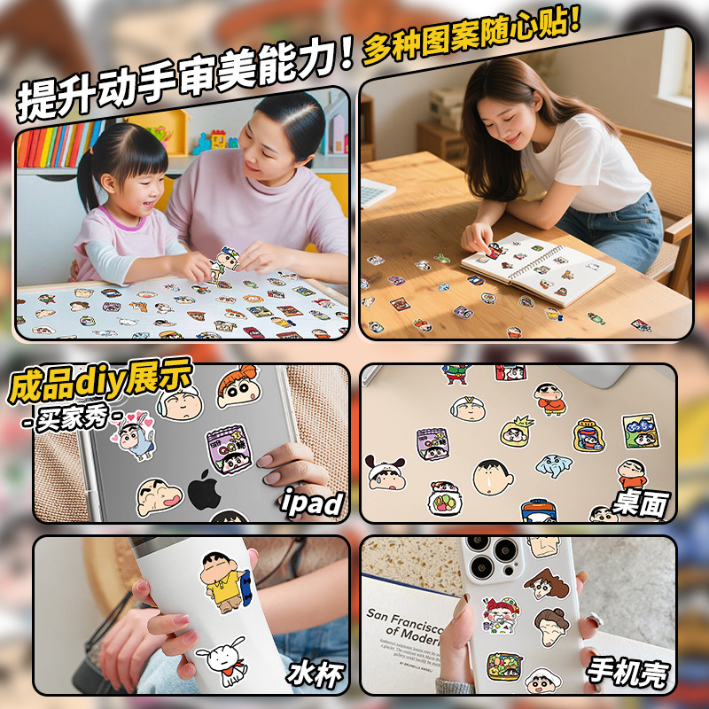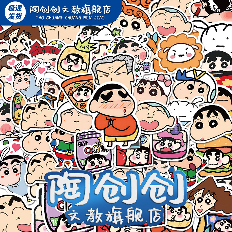 蜡笔小新贴纸可爱卡通动漫周边手机壳手账行李箱防丢桌面遮丑防水贴画