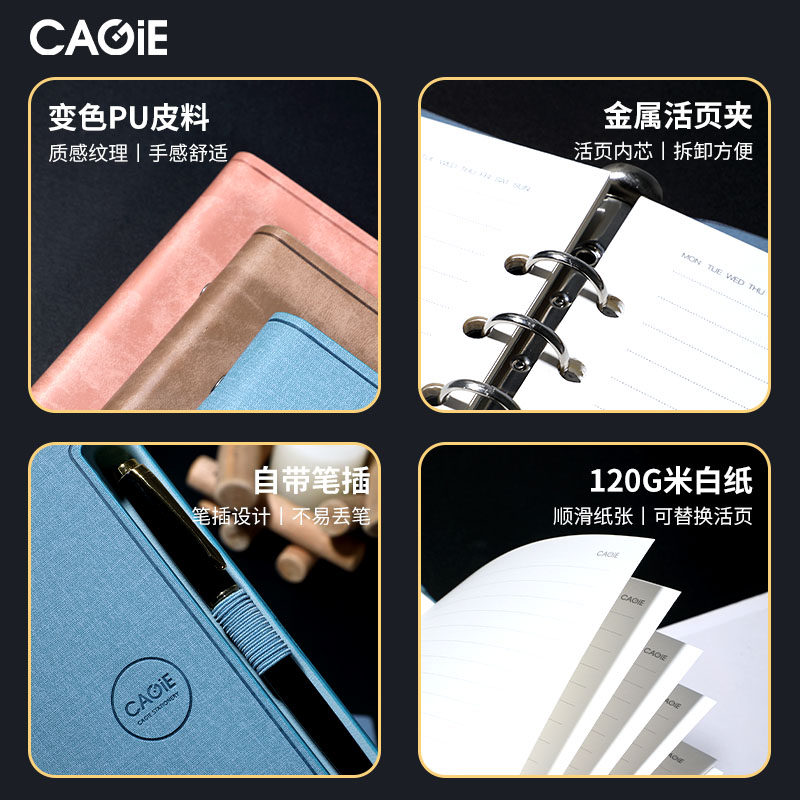 卡杰时尚活页本企业定制笔记本子高颜值父亲节教师伴手礼盒套装不硌手可拆卸芯工作日志成人手帐记事本印logo