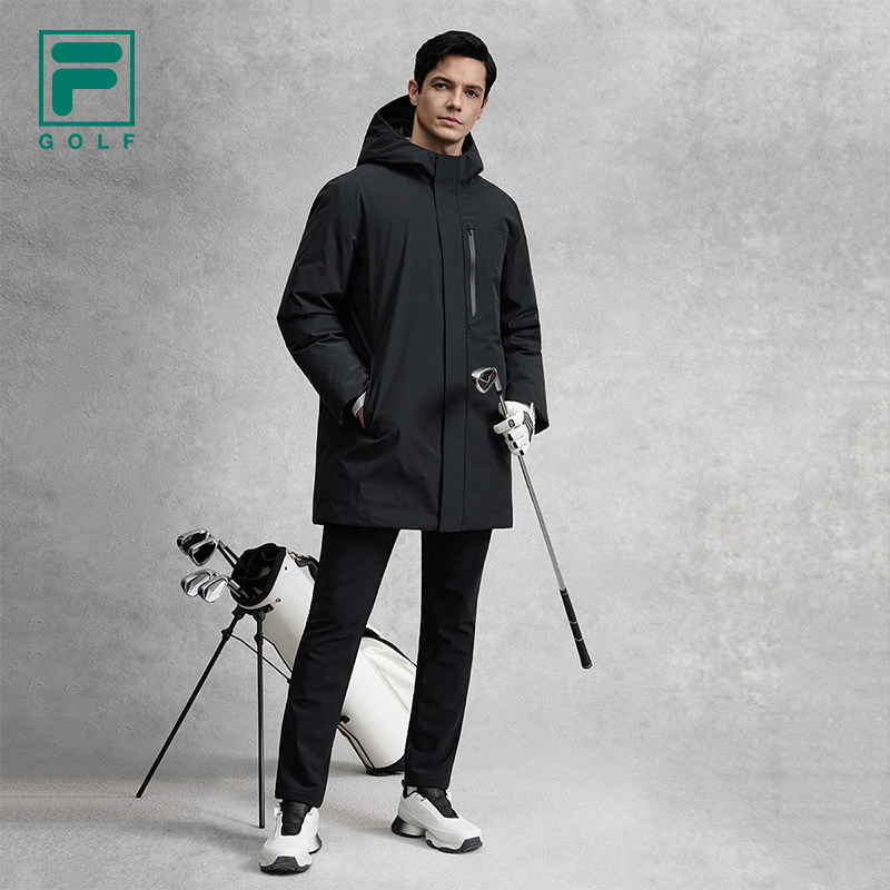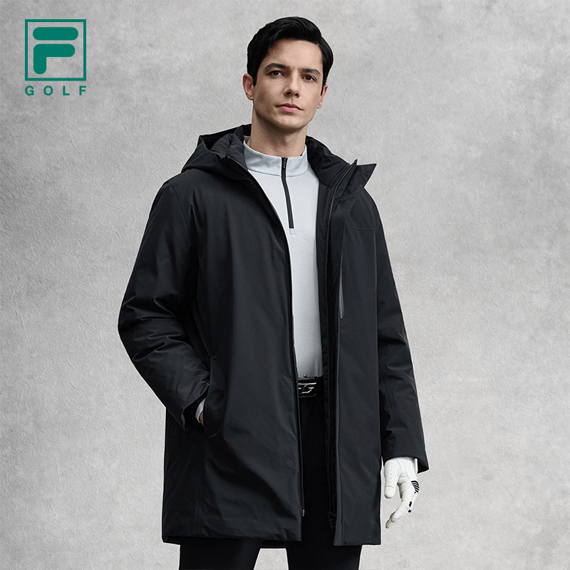 鹅绒FILA斐乐男士中长款羽绒服2025冬季新款高尔夫运动连帽外套