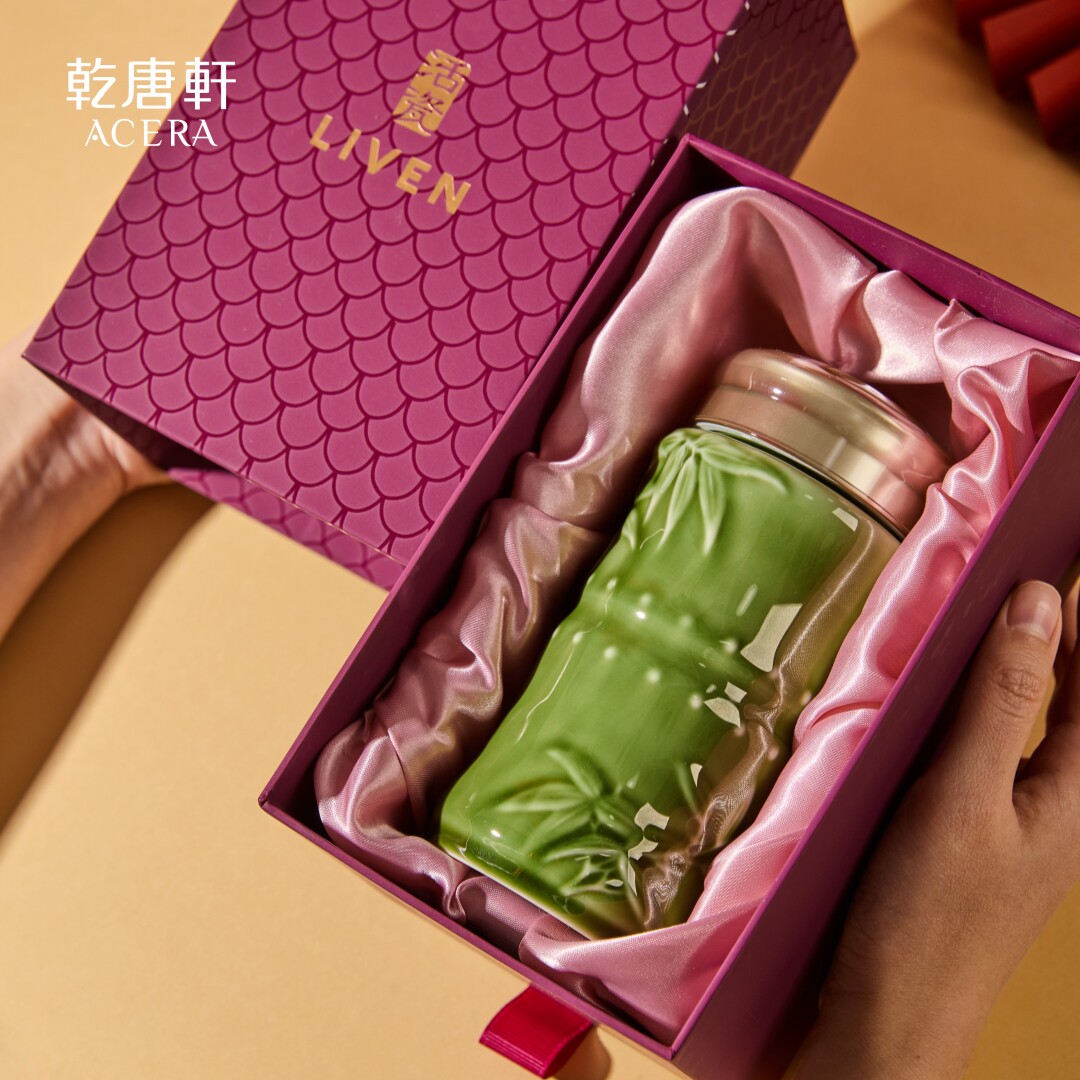 乾唐轩活瓷杯竹报平安随手杯水杯茶杯带盖陶瓷杯送礼