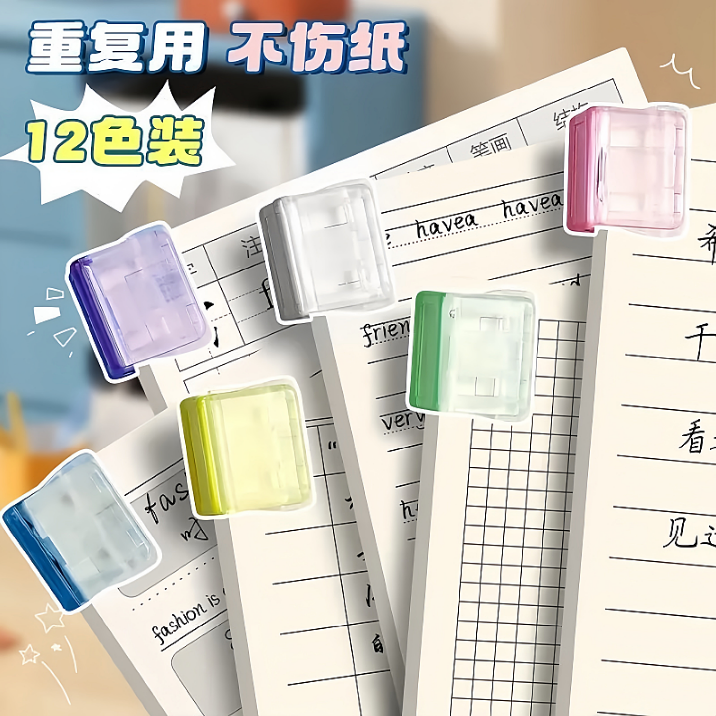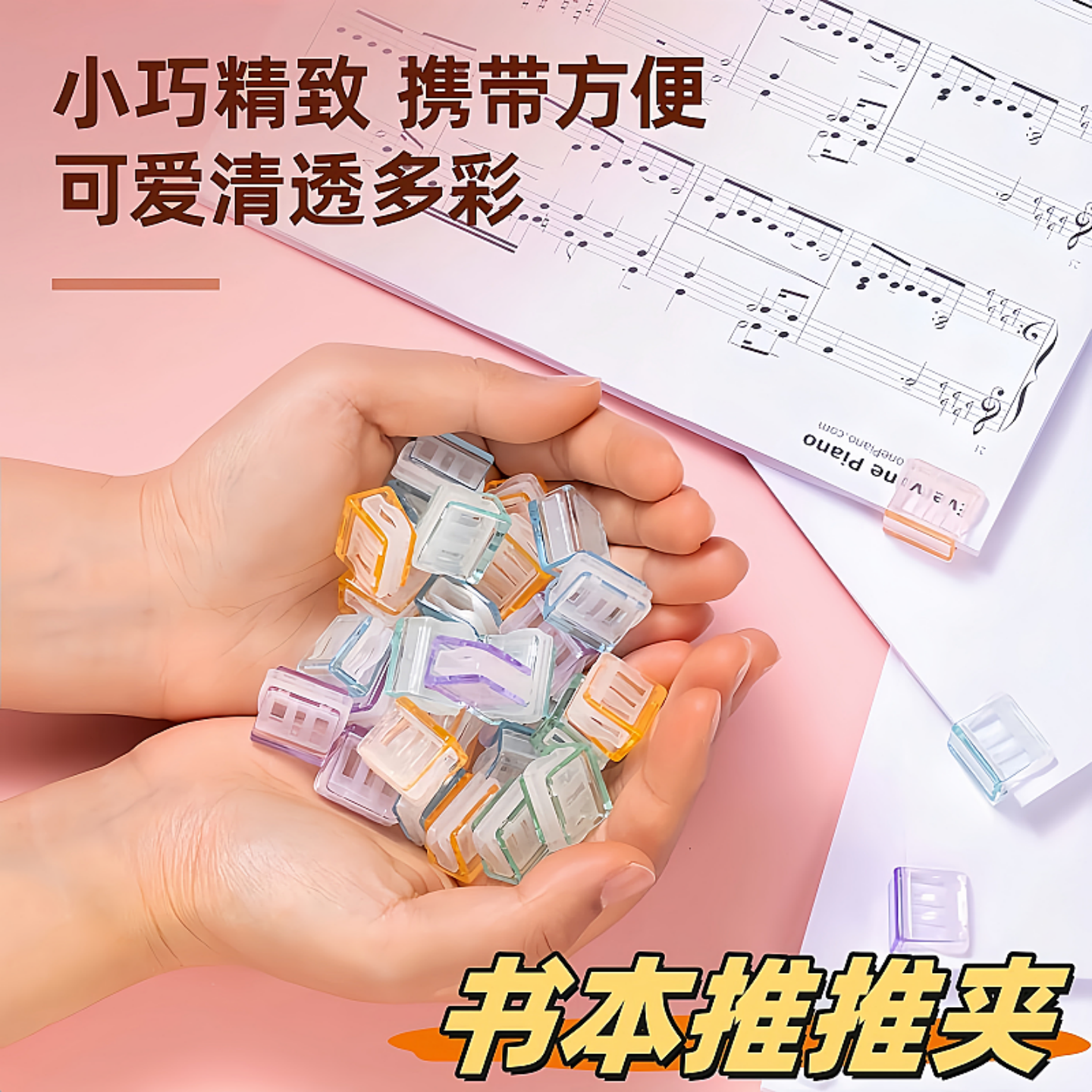 糖果透明推推夹防卷试卷固定器收纳推拉彩色夹子a4活页纸夹推夹器