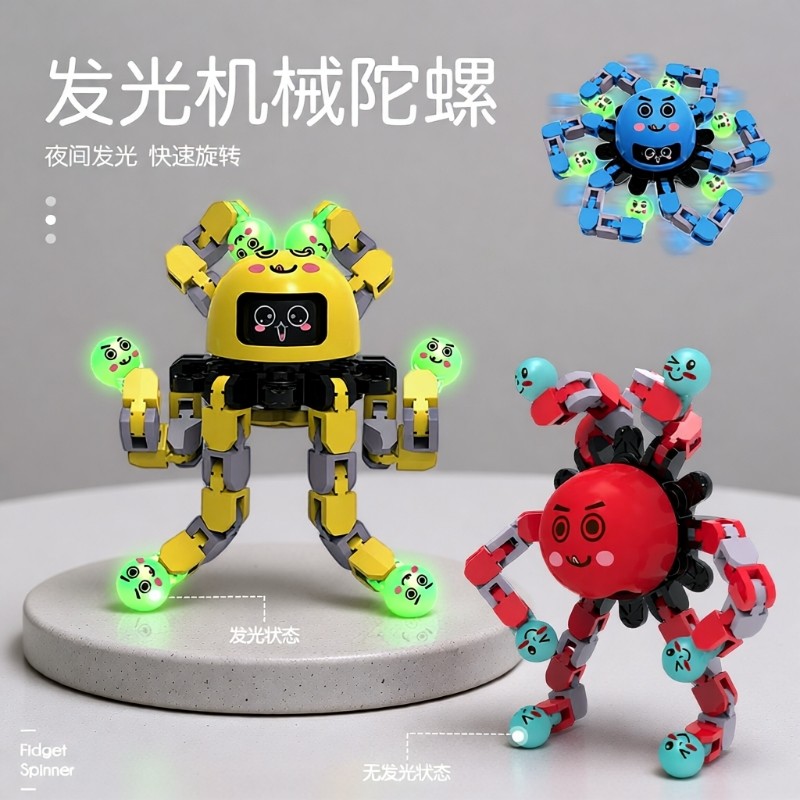 陀螺玩具可变形可发光益智机械指尖手指旋转解压儿童男孩男童玩具