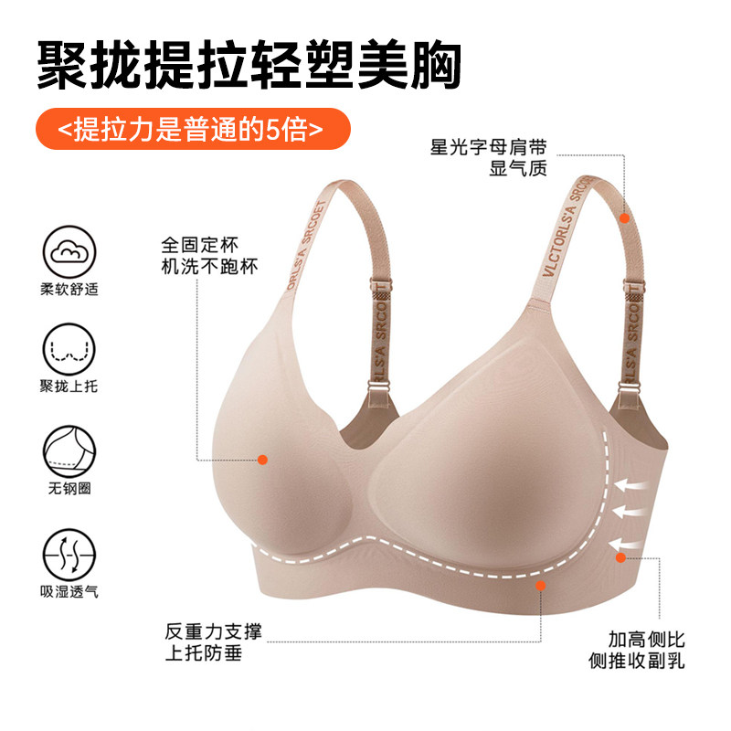 润微提拉内衣女大胸显小无痕防下垂收副乳胸罩爆款隐形粉底液文胸