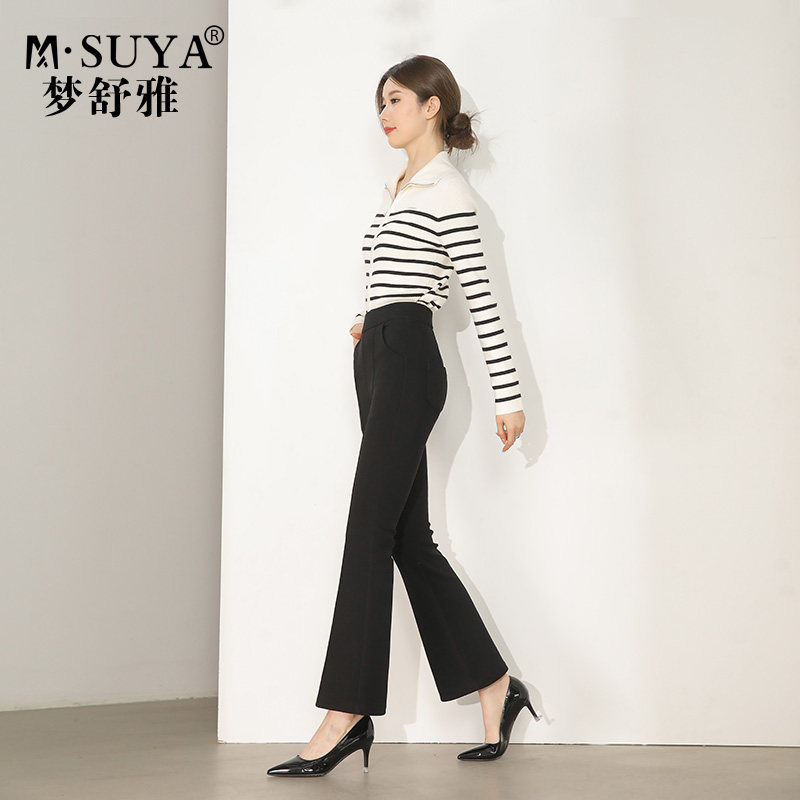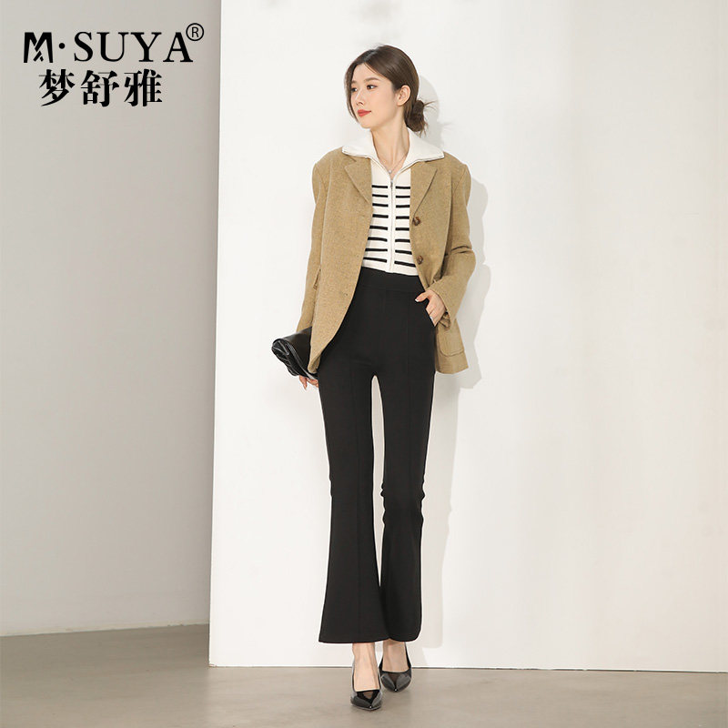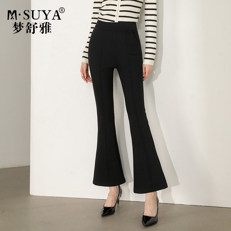 梦舒雅高腰微喇裤女秋冬季纯色休闲裤修身显瘦日常舒适百搭喇叭裤