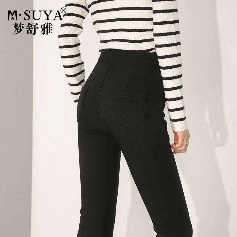 魔悦加绒糯米裤2025秋冬新款口袋显瘦休闲裤