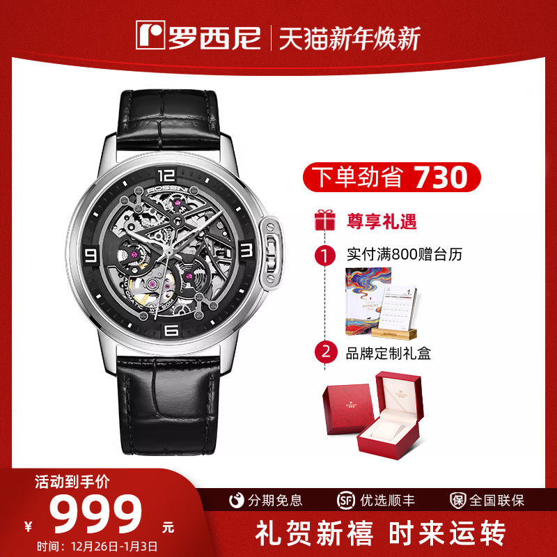 罗西尼手表男机械表全镂空勋章系列潮流时尚男士男款腕表5210091