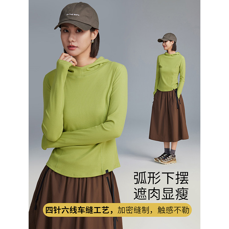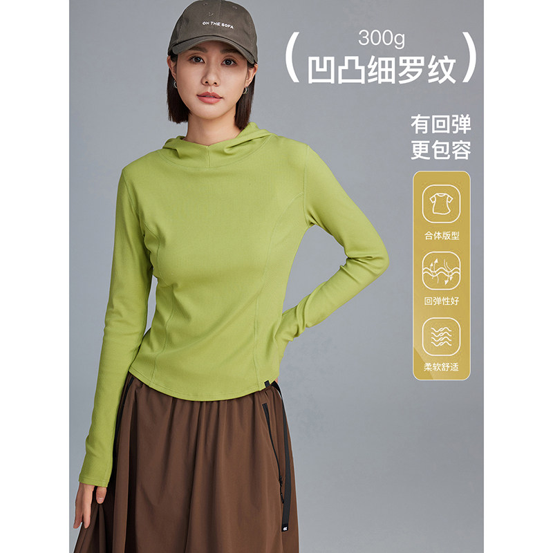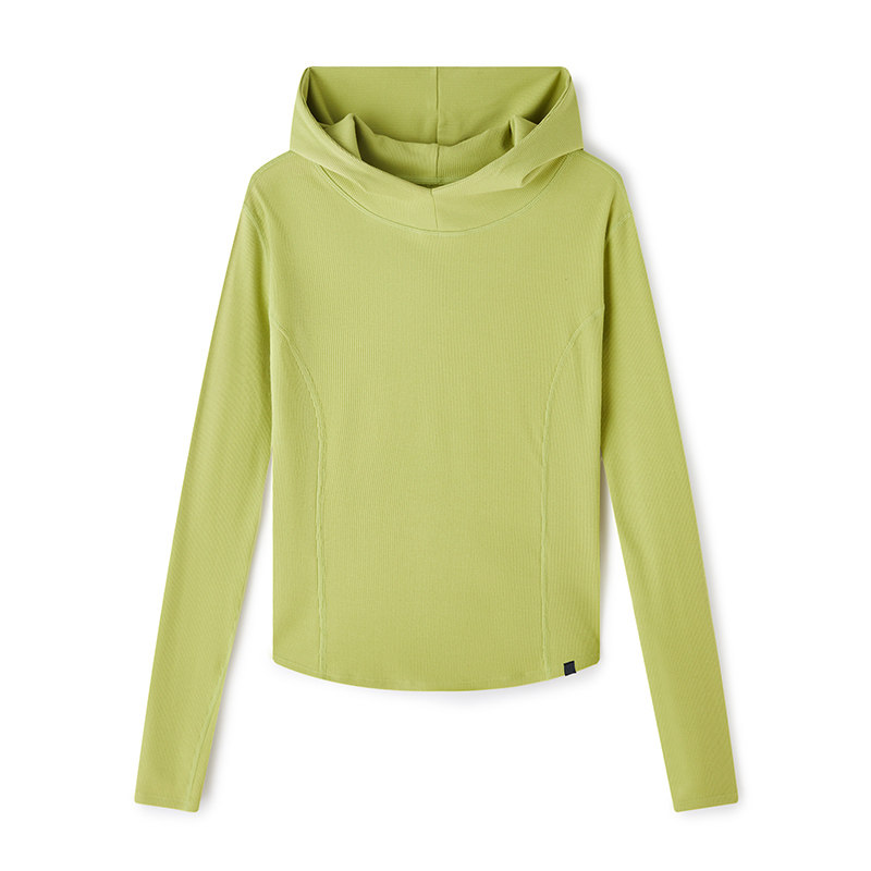 云上生活【柠绿T恤】罗纹肌理连帽打底衫春秋针织长袖女t恤上衣