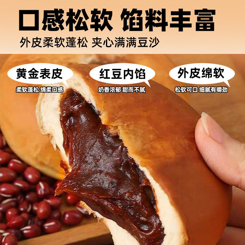 老式红豆沙面包夹心营养早餐整箱学生夜宵晚上充饥宿舍饱腹零食品