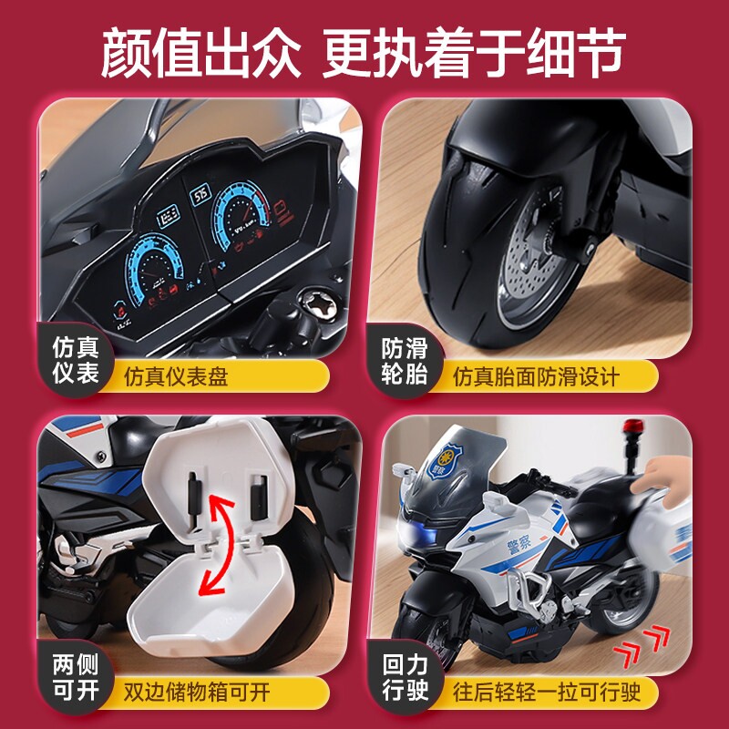 大号合金警察摩托车玩具男孩儿童模型宝宝3到6岁男童小礼物警车