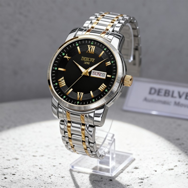正品瑞士2024新款手表男士全自动机械风防水精钢带双日历男表夜光