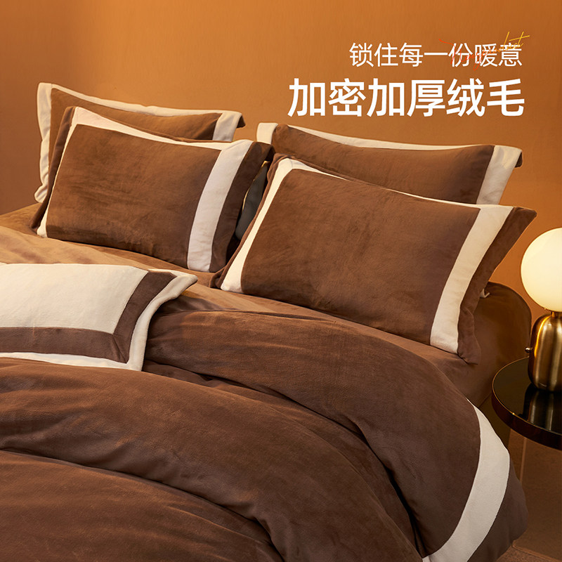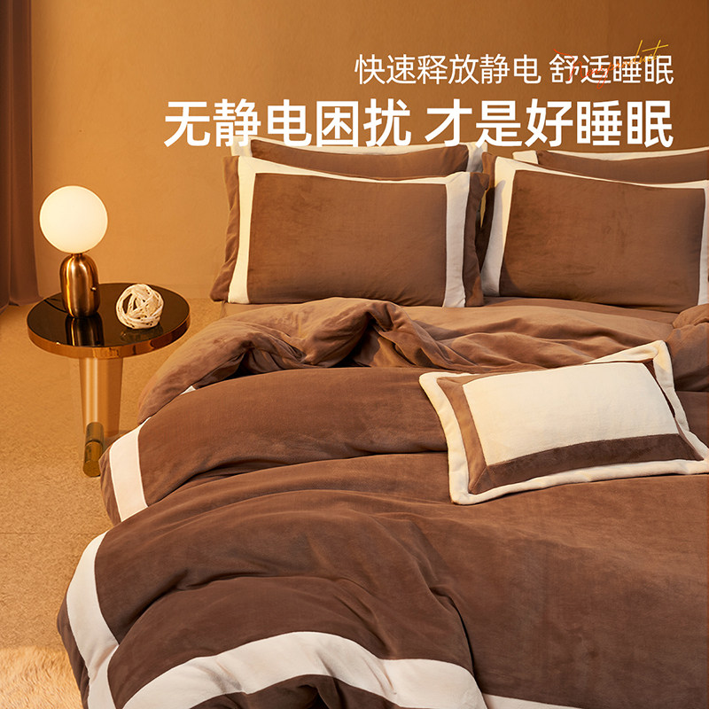 洁丽雅牛奶绒四件套冬季珊瑚绒被套床单加绒毛绒法兰绒床上三件套
