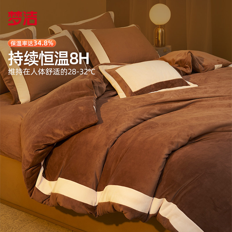 梦洁家纺磨绒牛奶绒四件套秋冬保暖家用租房床上用品暖绒2025新款