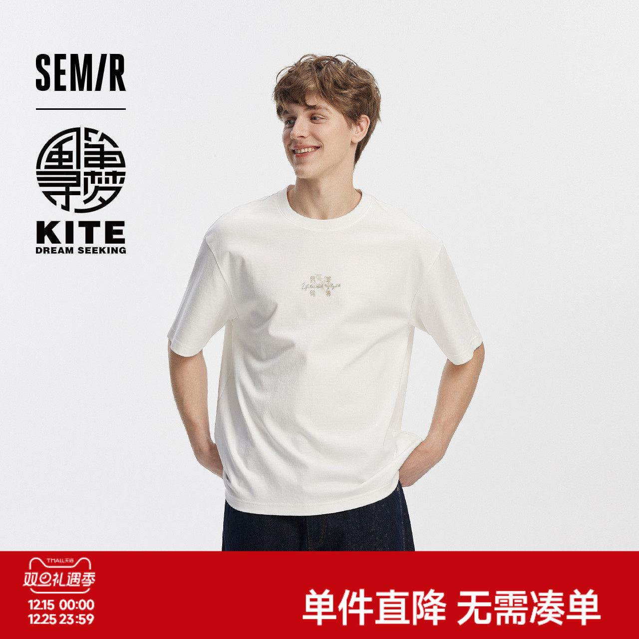 [商场同款]森马曹雪芹风筝联名短袖T恤男2025秋新款国潮印花刺绣