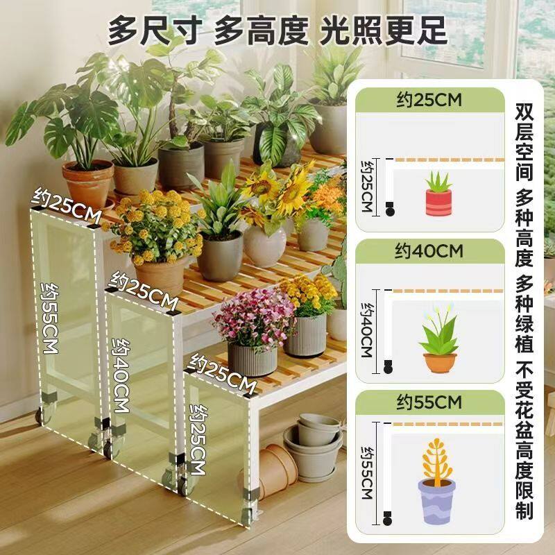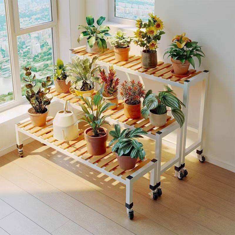 花架置物架实木阶梯多层带轮落地式家用室内户外绿萝花盘架子