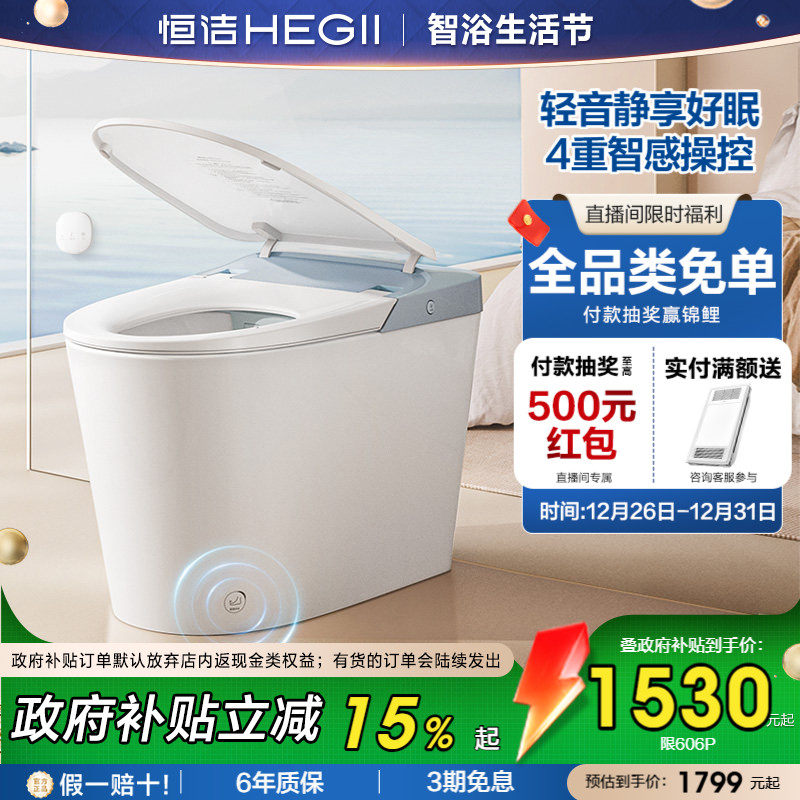 恒洁轻智能马桶座圈加热坐便器智控翻盖脚感零压冲家用小户型606P