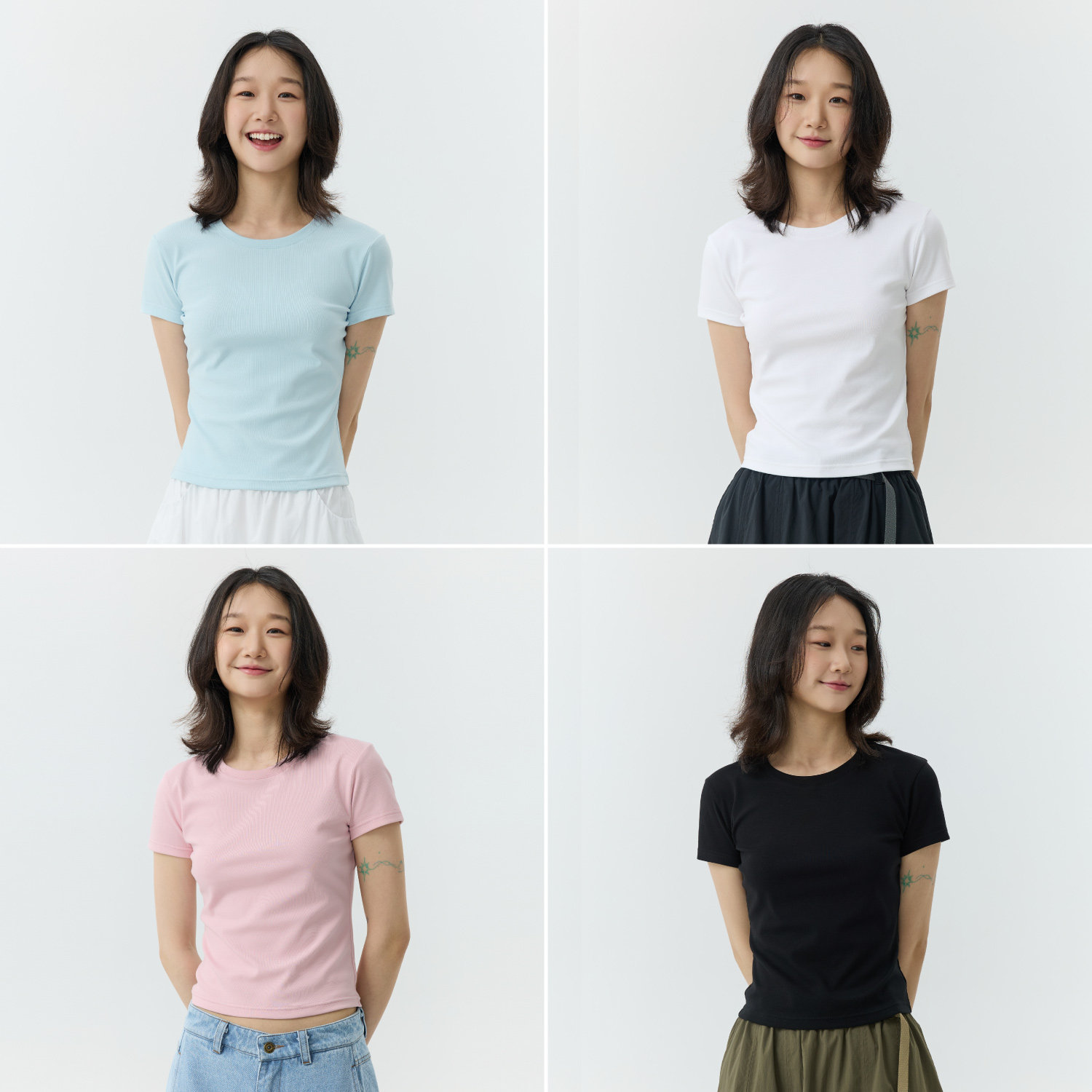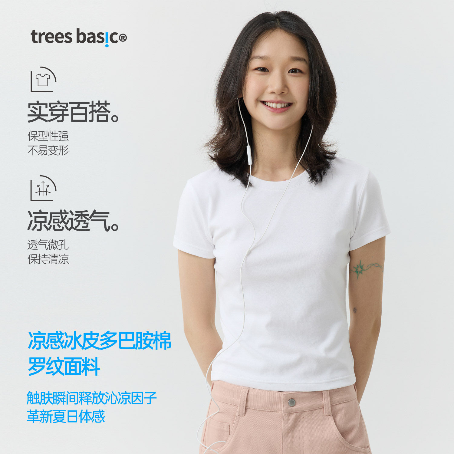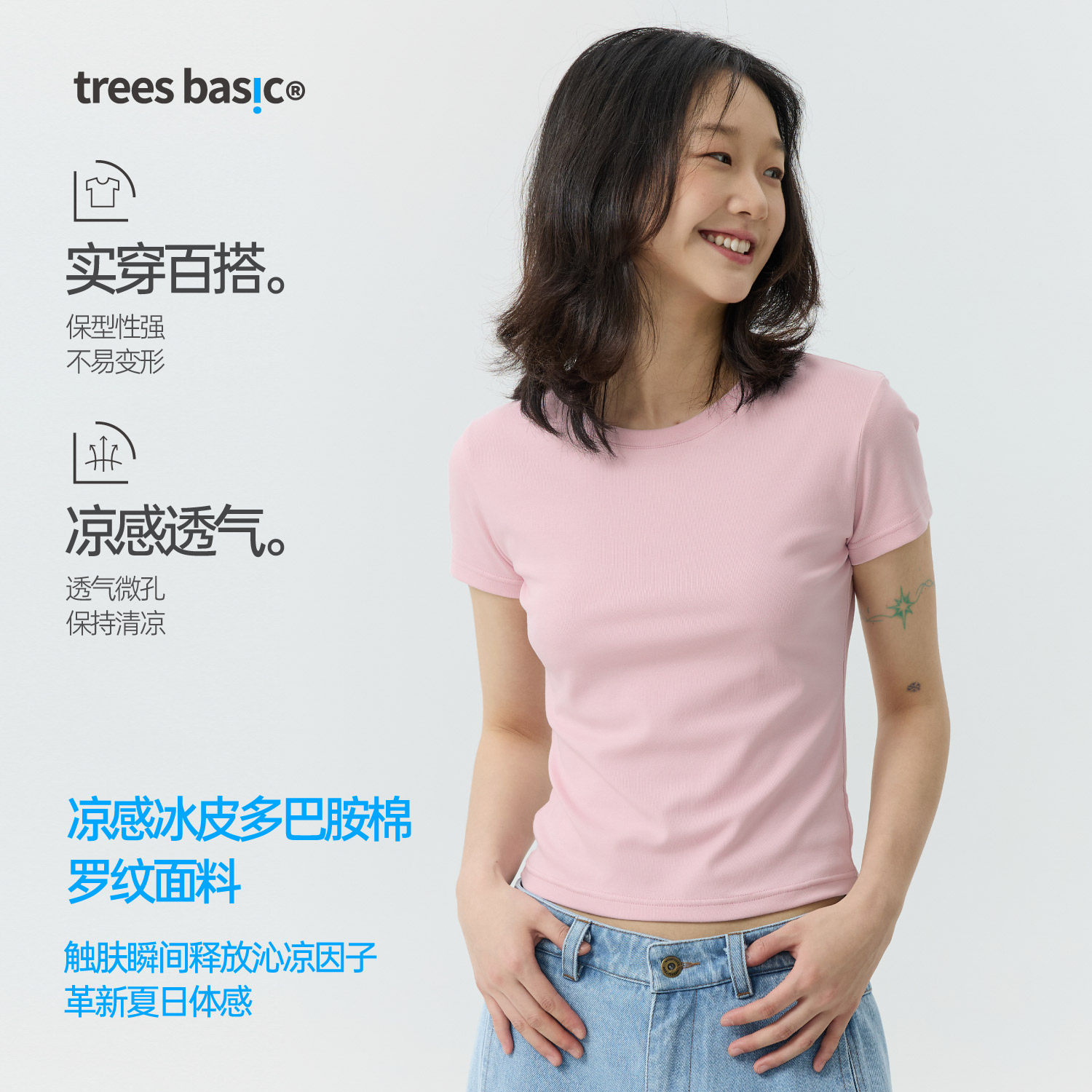TreesBasic女凉感冰皮罗纹面料短袖T恤(修身版型)