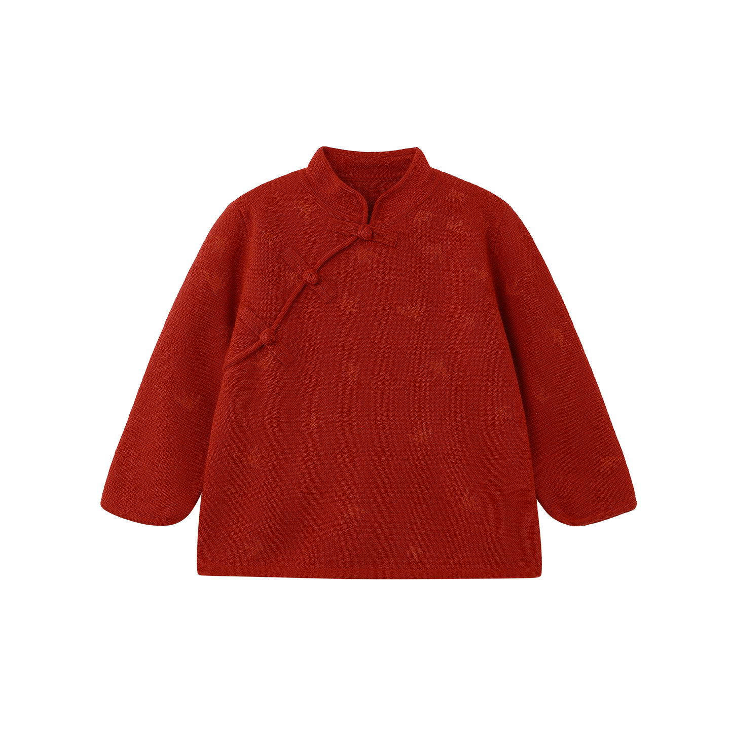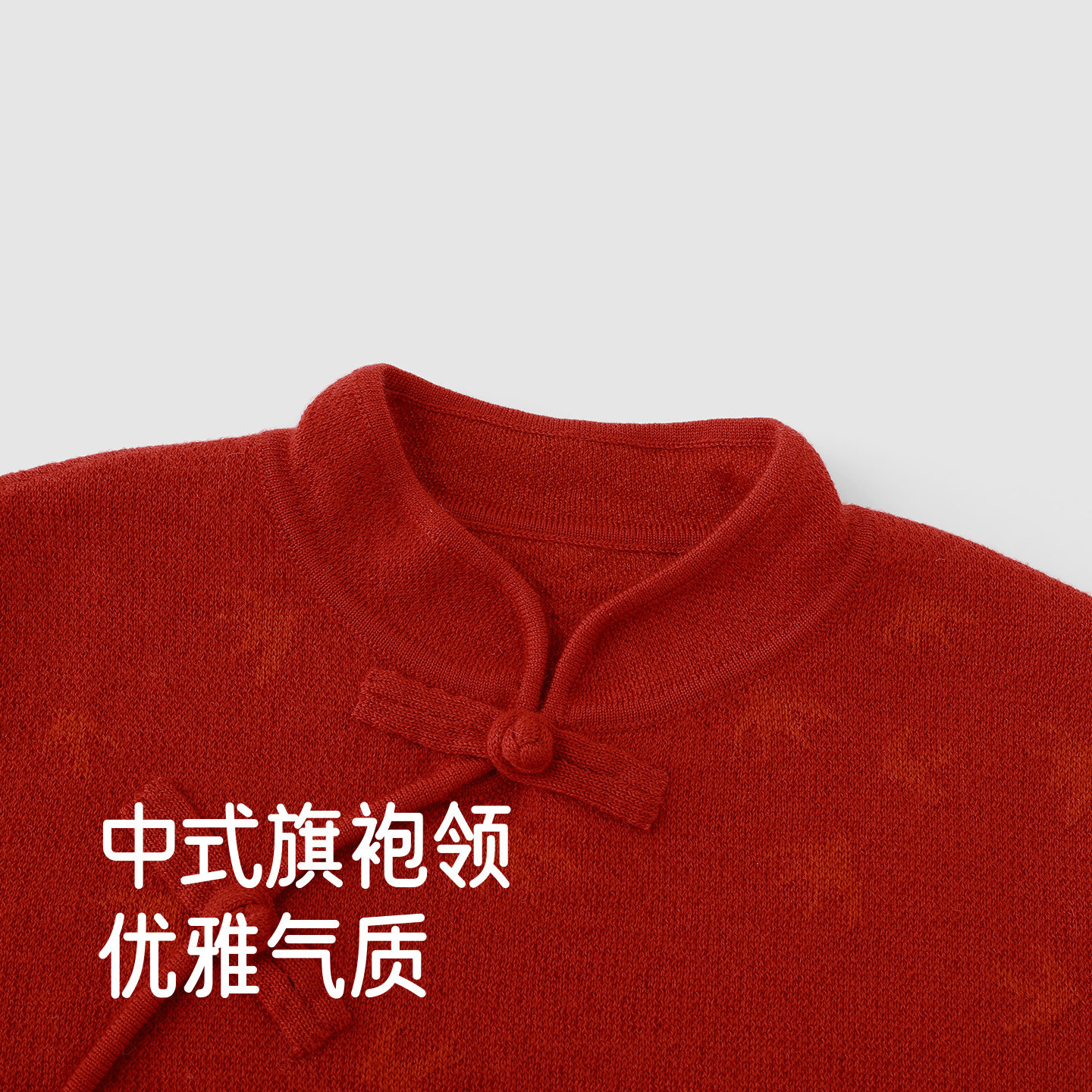 【高定系列】英氏儿童毛衣秋冬男女童中式喜庆旗袍红色羊毛针织衫
