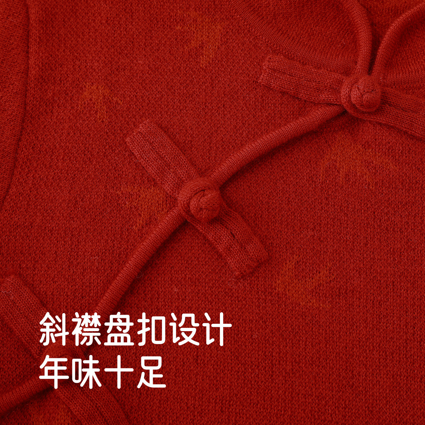 [骏马福裳]齐齐熊男童毛衣开衫冬装新年红色加厚宝宝毛线外套上衣