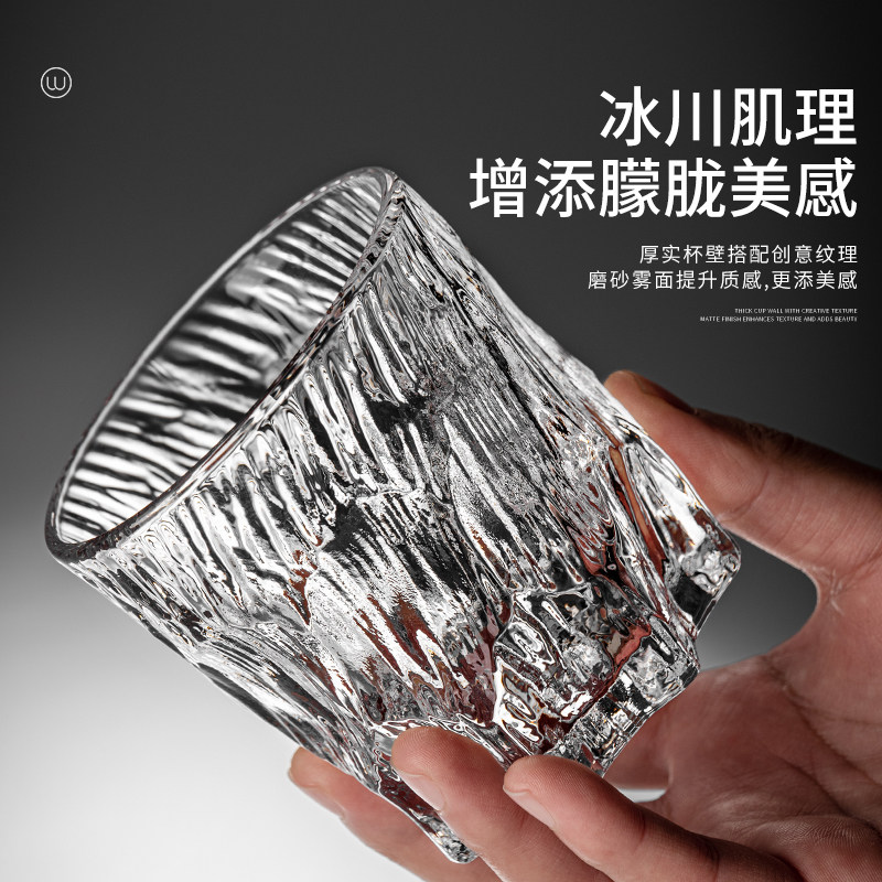 ins风粉色山脉厚底观山杯高颜值创意玻璃杯咖啡杯啤酒杯果汁杯子