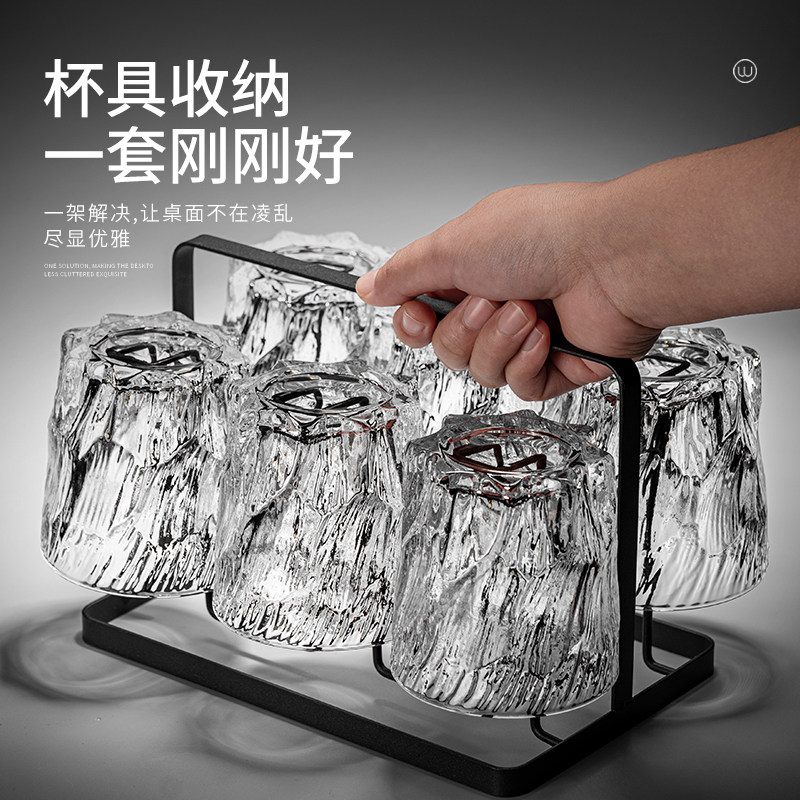 青苹果玻璃杯冰川水杯子家用待客喝水套装轻奢红啤酒茶杯收纳实用