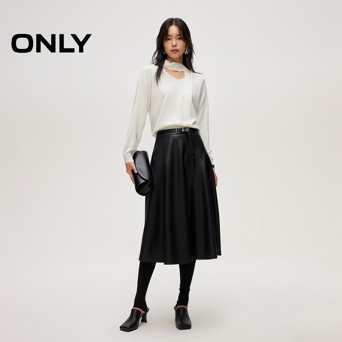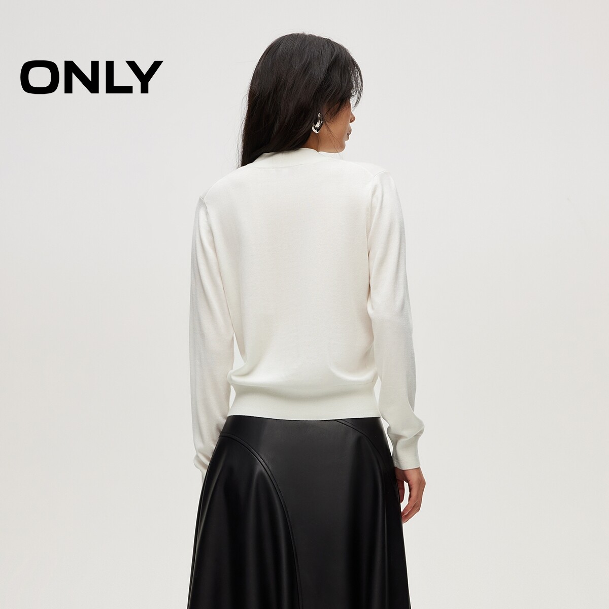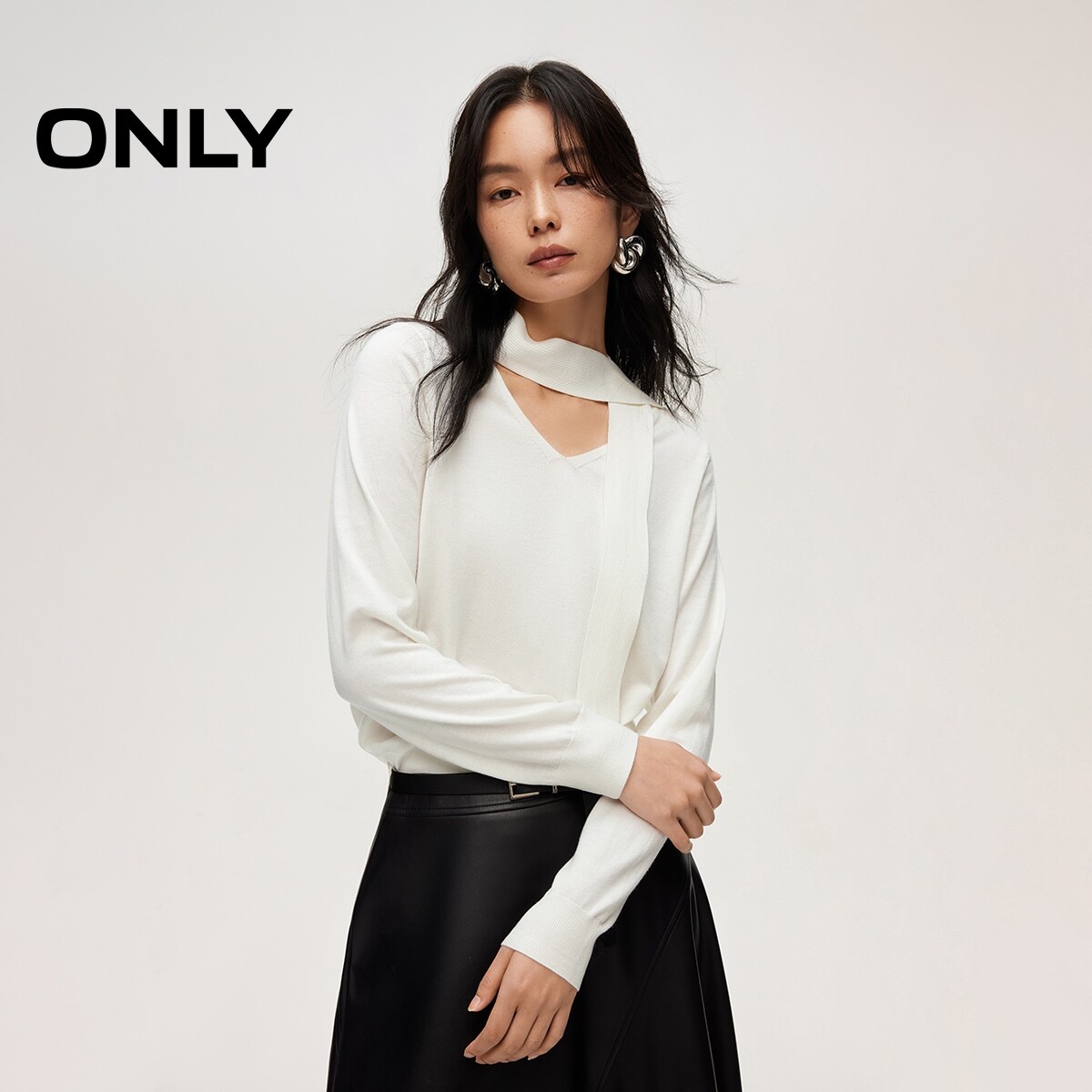 ONLY2026春季新款通勤职场优雅针织飘带深V领亲肤毛衣针织衫女