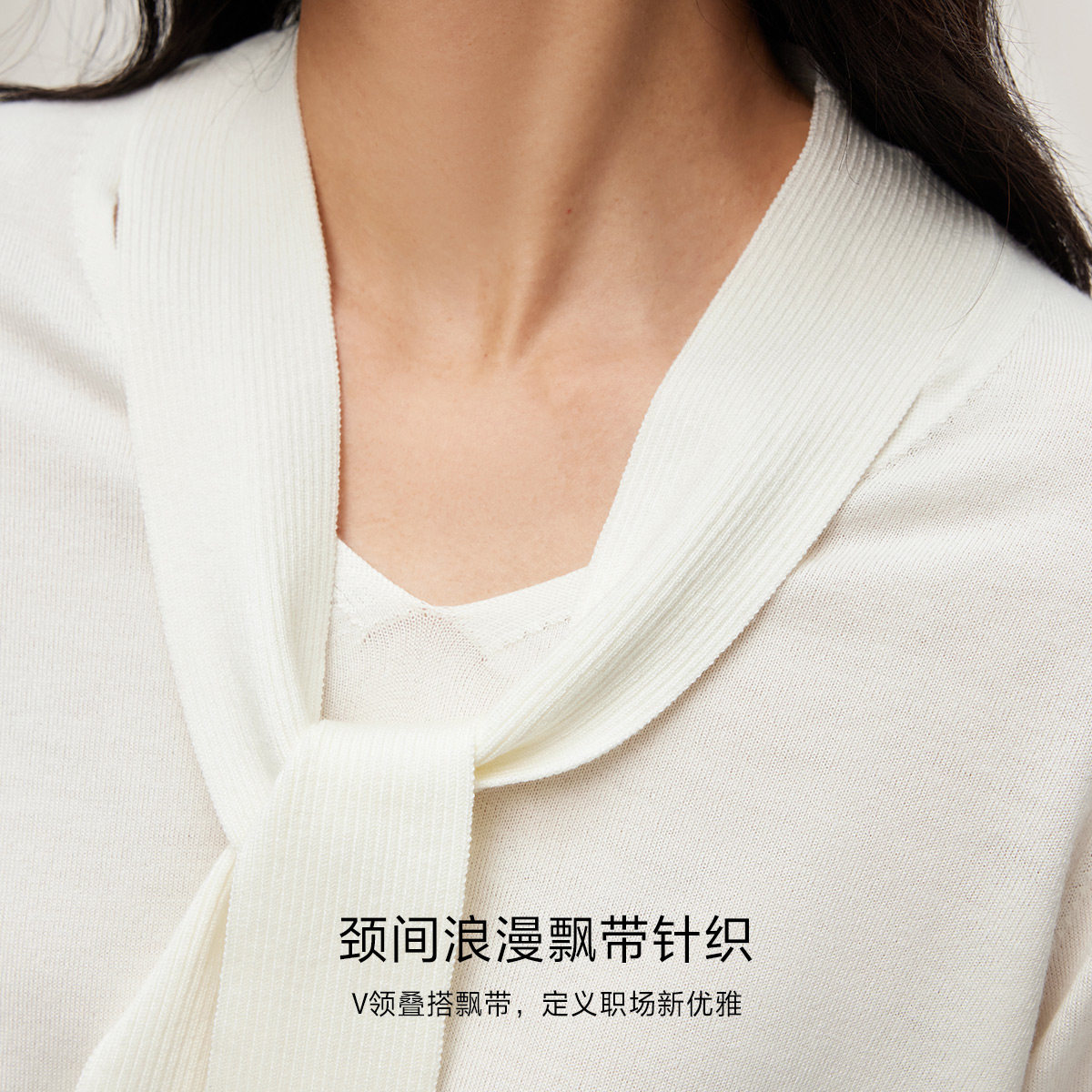 优雅针织飘带设计,简约深V领口