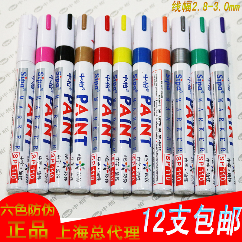 正品中柏油漆笔SP110涂鸦笔签到笔轮胎笔 油性补漆笔白色记号批发