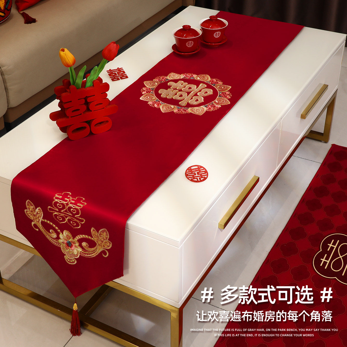 桌旗结婚茶几桌布婚房布置装饰红色婚礼订婚用品喜事婚庆用品大全