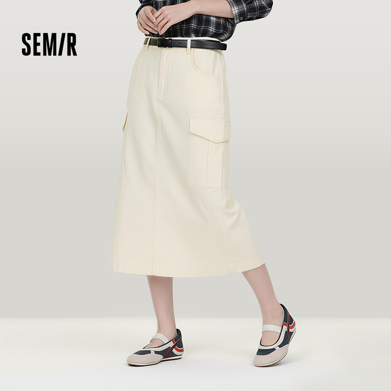 森马半身裙女春季磨毛纯色开叉直筒裙小个子简约休闲风潮酷工装裙