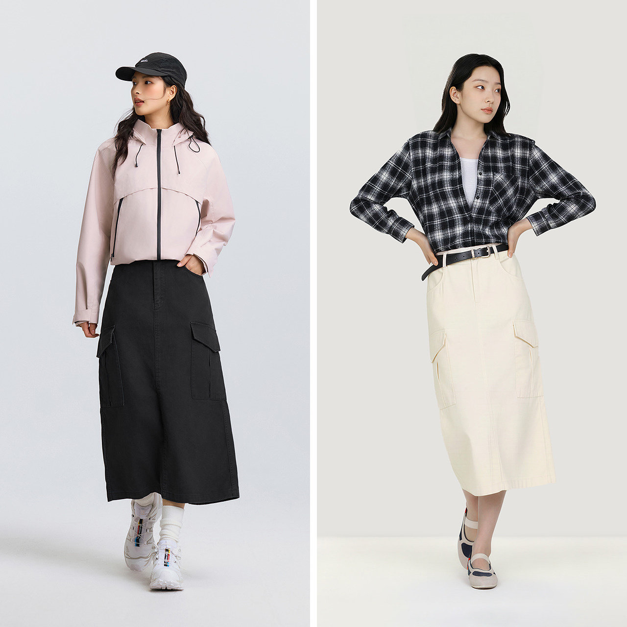 RAPPEYE口袋工装裙美式复古简约a字休闲设计感百搭中长款半身裙潮