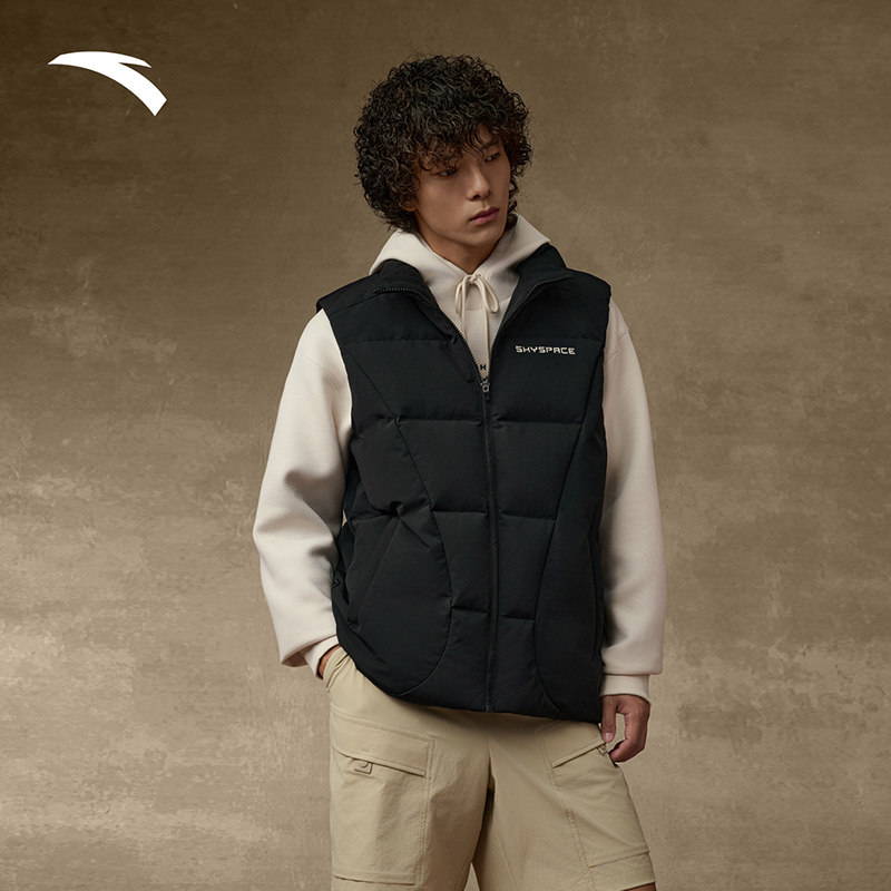 安踏美式复古羽绒服马甲男2025冬季新款时尚休闲防风立领棉服背心