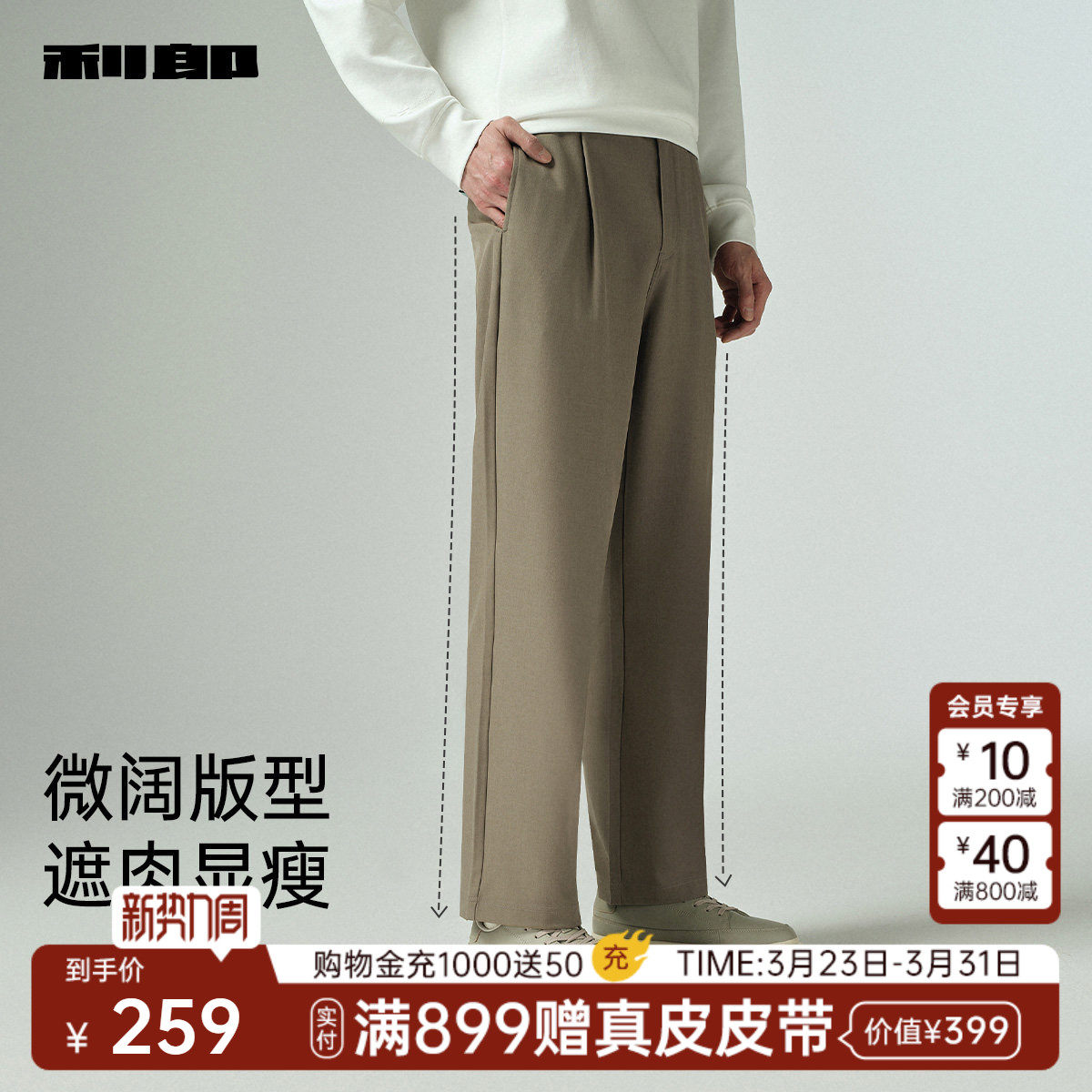 【松紧腰阔腿裤】利郎休闲裤男士春秋款新款商务休闲男装弹力长裤