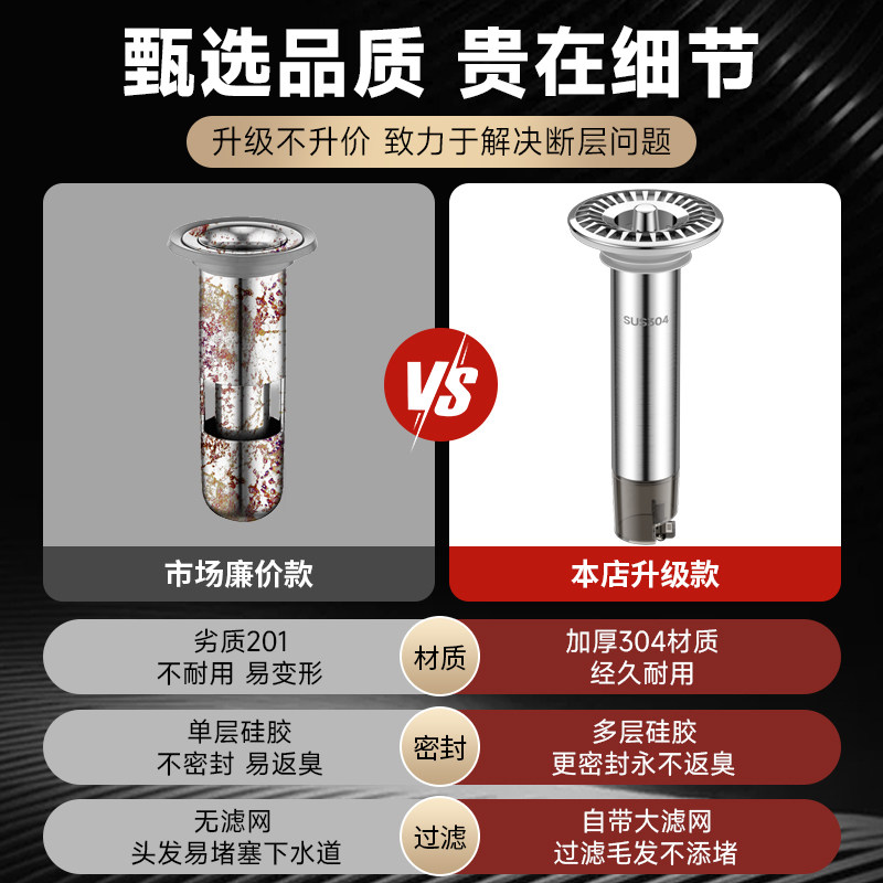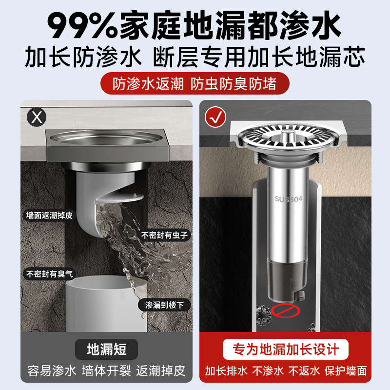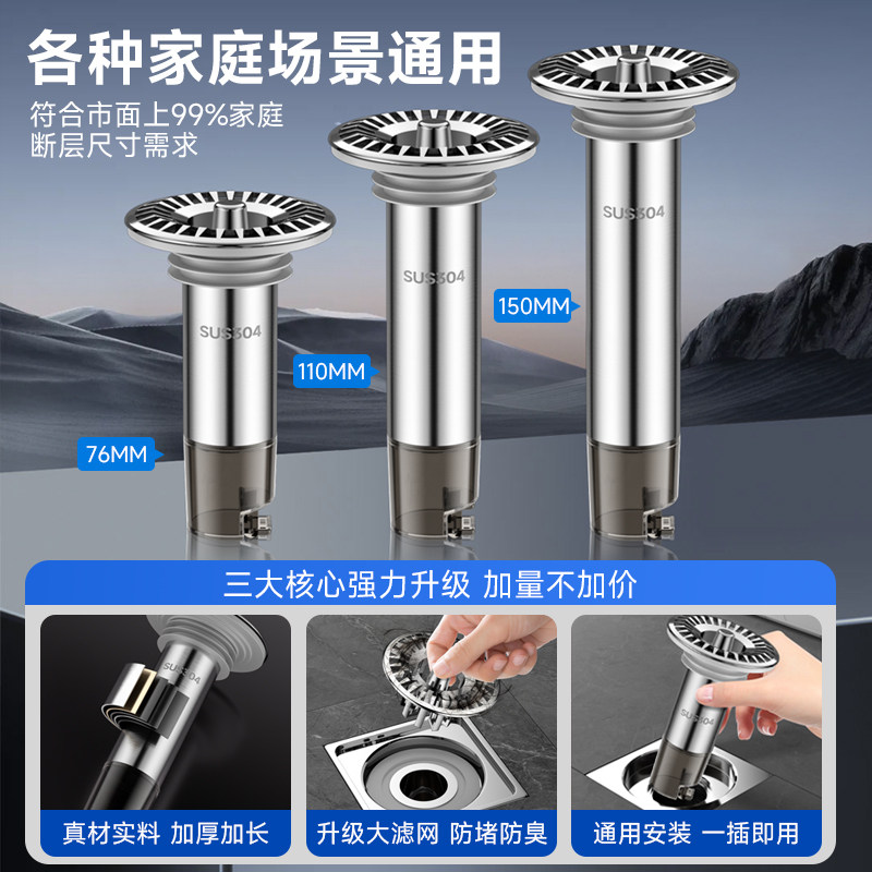 地漏防臭卫生间通用不锈钢断层加长内芯下水道防返臭神器过滤网盖