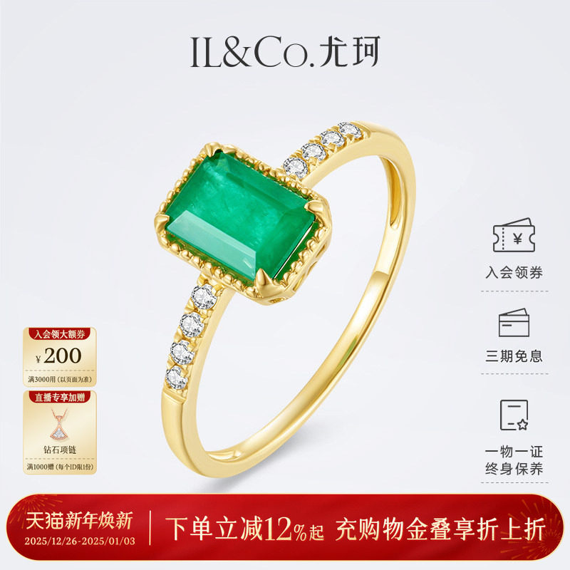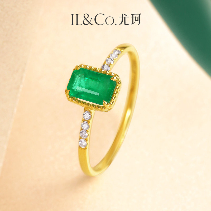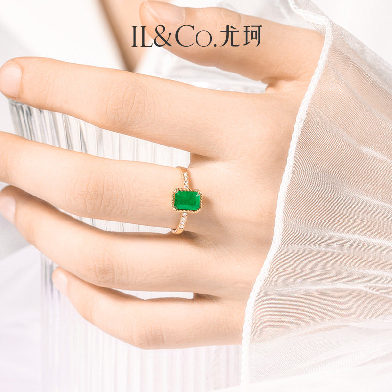 ILCO尤珂「夏日森林」复古祖母绿戒指18k金天然彩宝钻石女戒1克拉