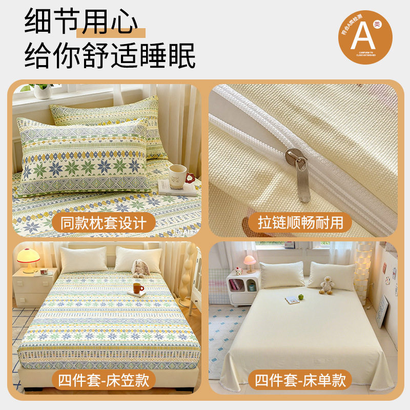 2025新款学生宿舍单人水洗棉夹棉床笠单件床垫保护罩套床单三件套