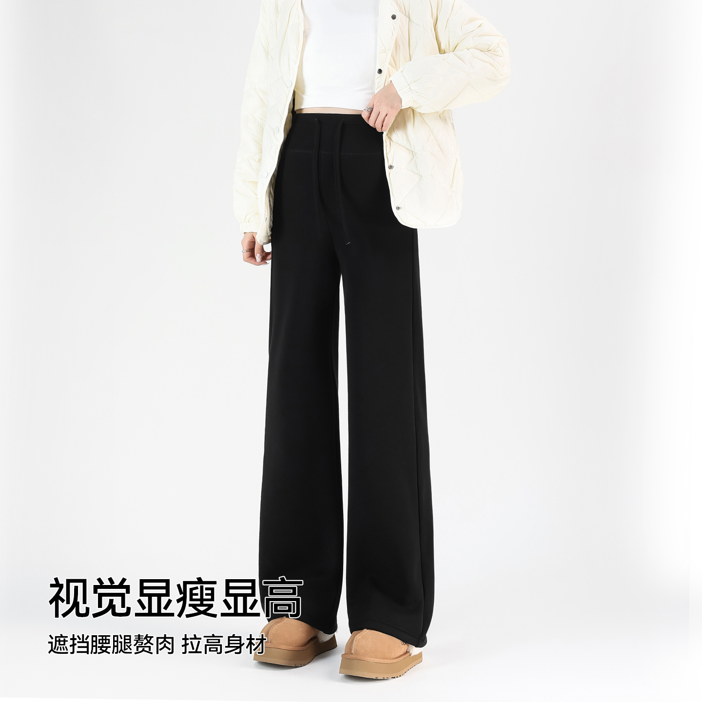 英氏孕妇休闲裤子秋冬外穿加绒保暖阔腿裤2025新款显瘦百搭直筒裤
