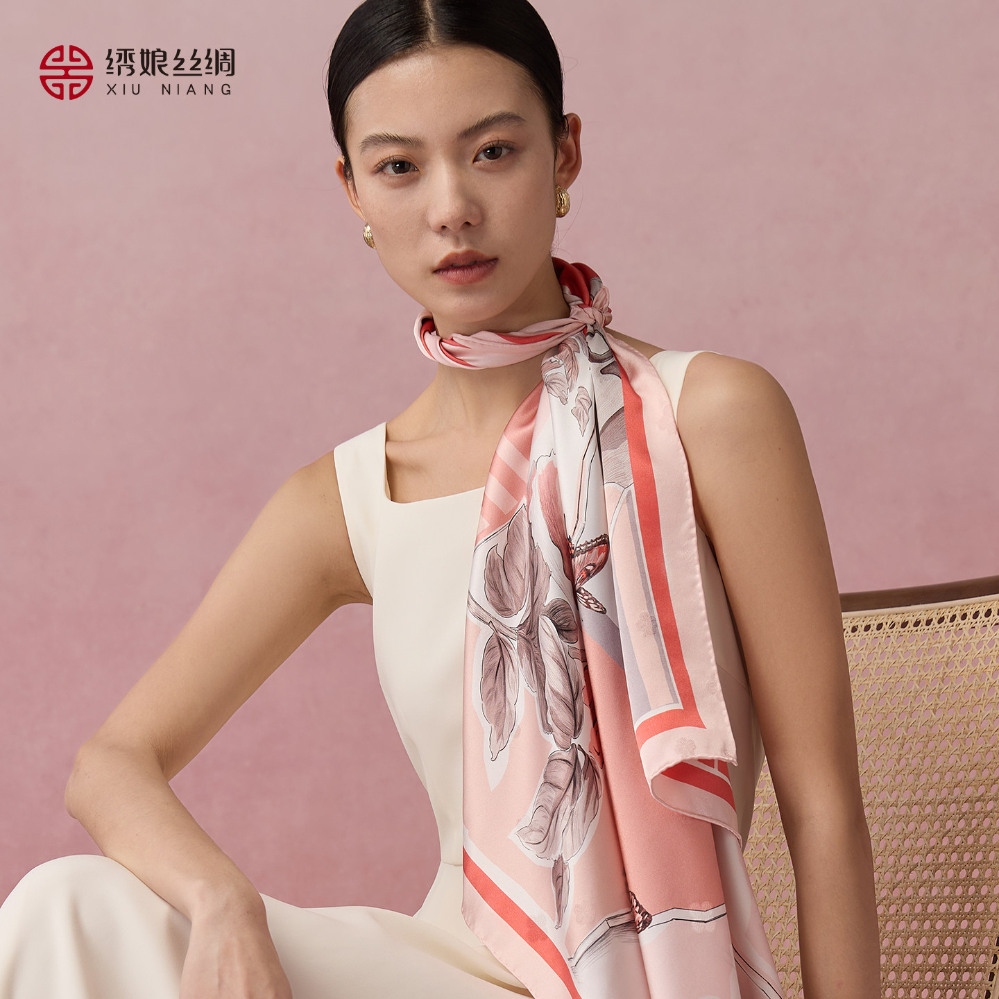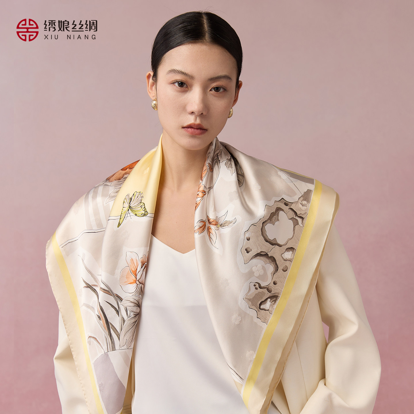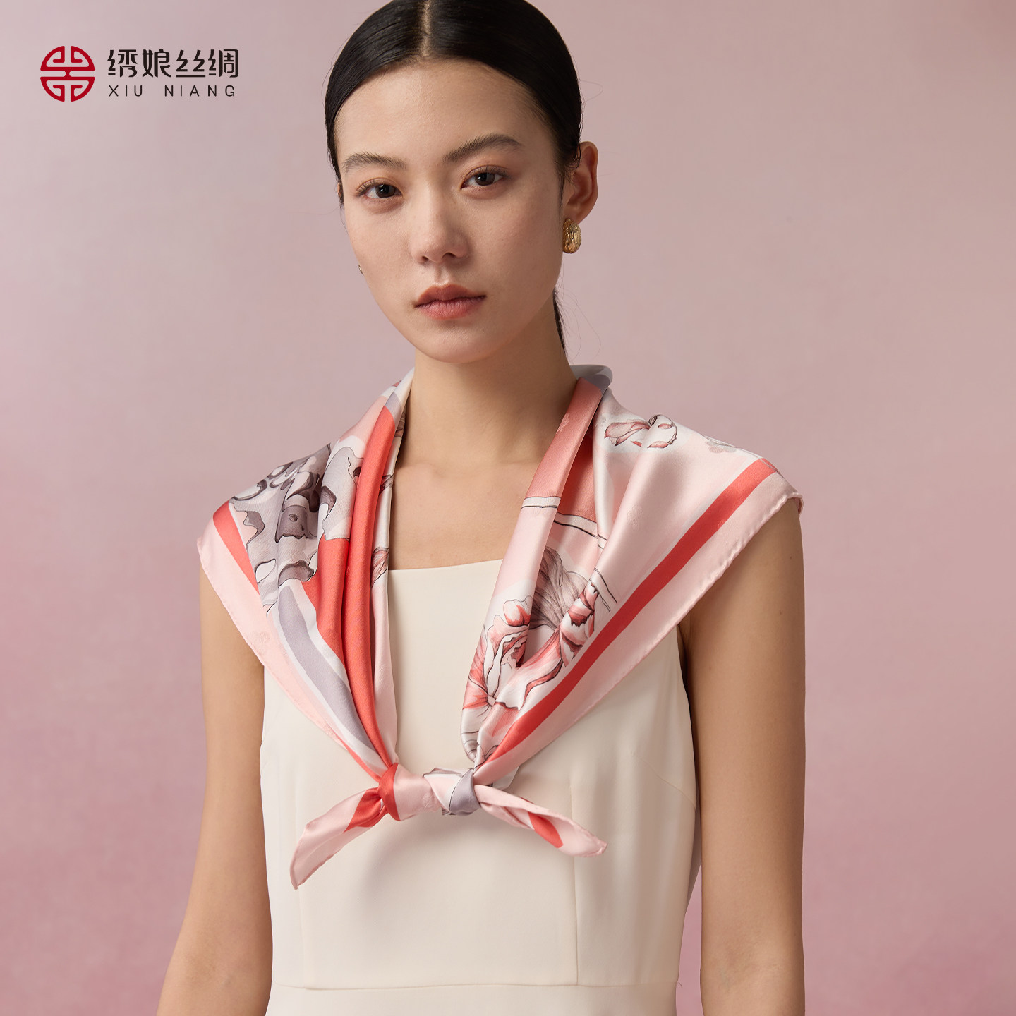 绣娘丝绸2026春夏真丝方巾双面印花丝巾高级披肩女外搭送女友礼物