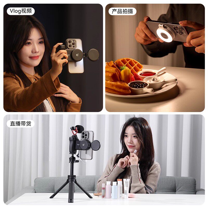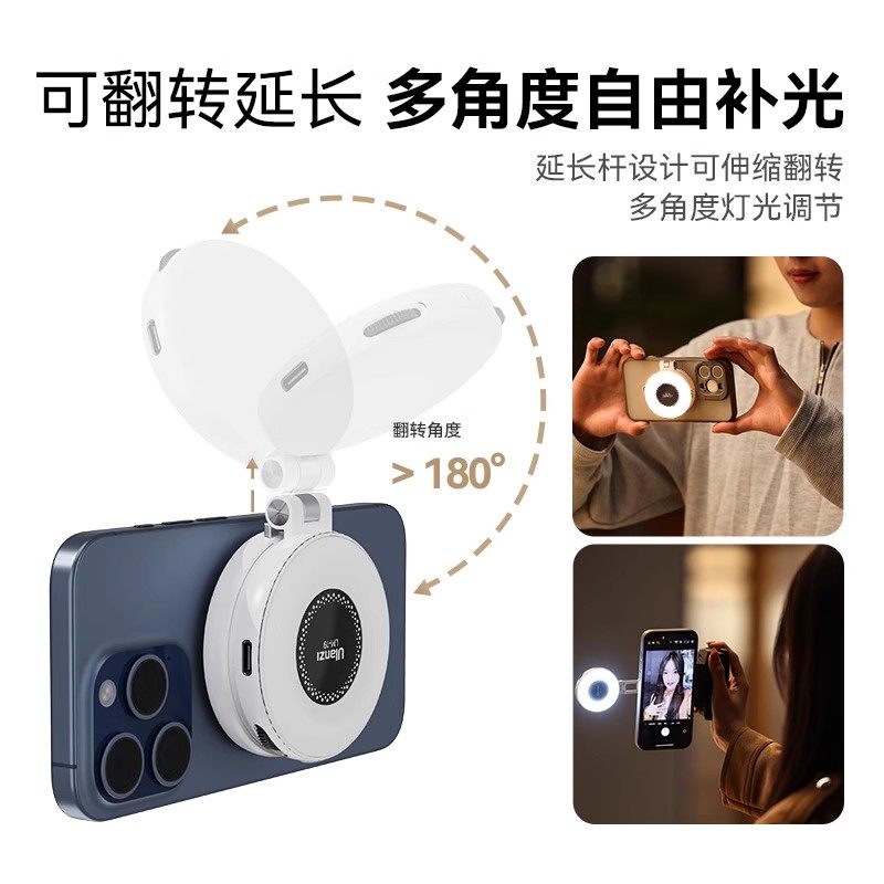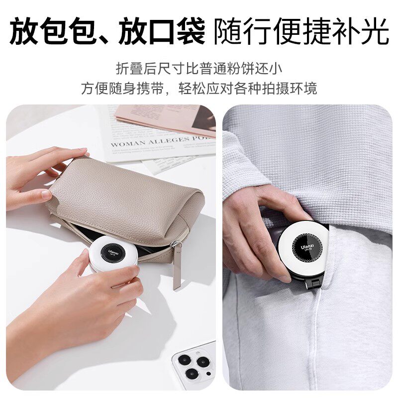 Ulanzi优篮子LM19熊猫灯MagSafe手机磁吸补光灯便携式手持自拍直播摄影美颜小型便携拍照打光神器迷你口袋灯