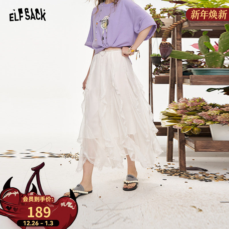 妖精的口袋荷叶边蕾丝半身裙女2025年夏季新款层次感甜美中长裙子
