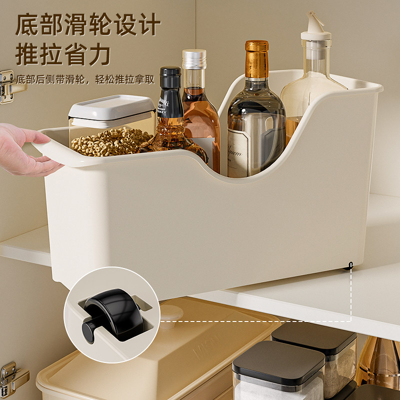 厨房锅具收纳盒整理盒锅盖调料带滑轮下水槽橱柜收纳多功能收纳架