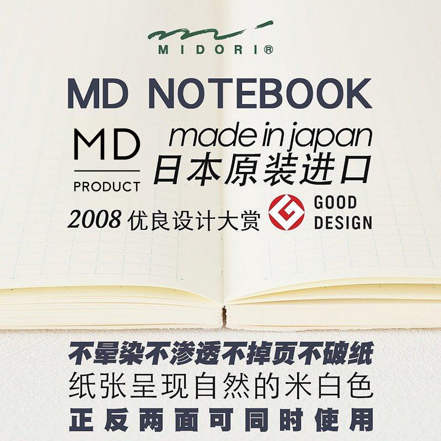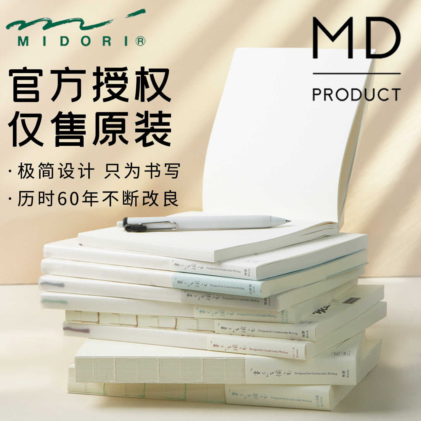 日本midori余白笔记本md手帐本hobo手账内芯A6空白A5方格日记本子
