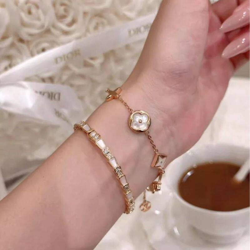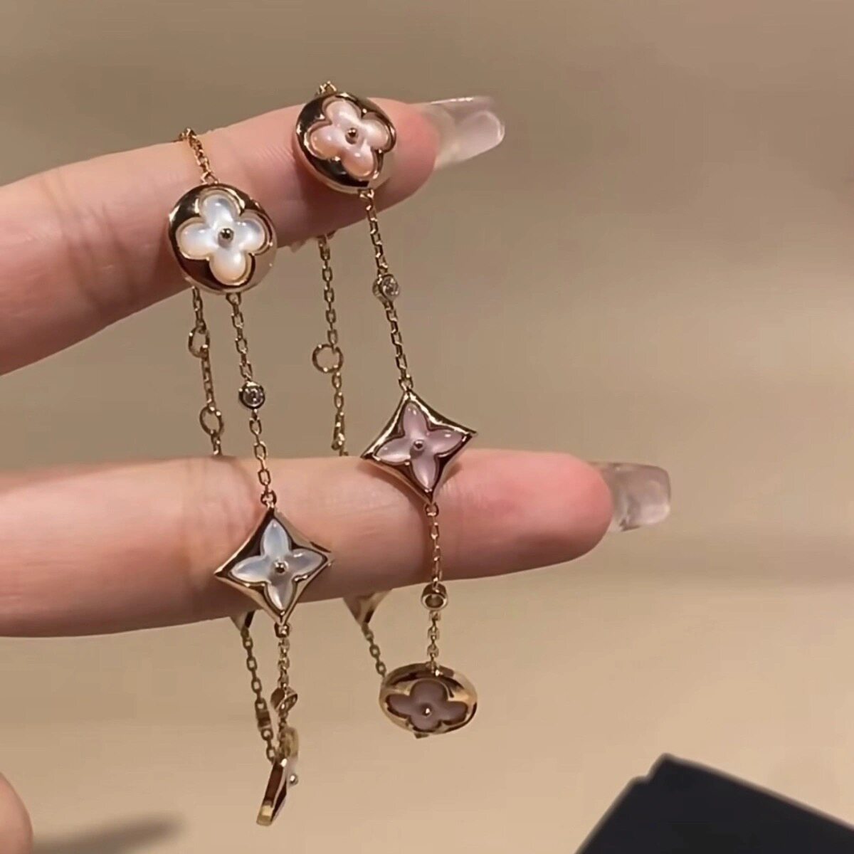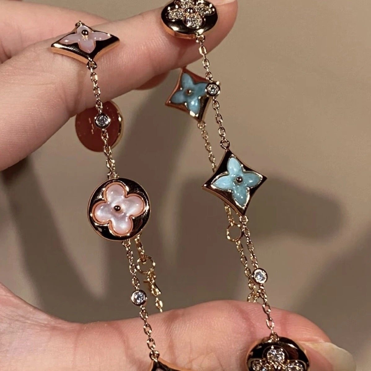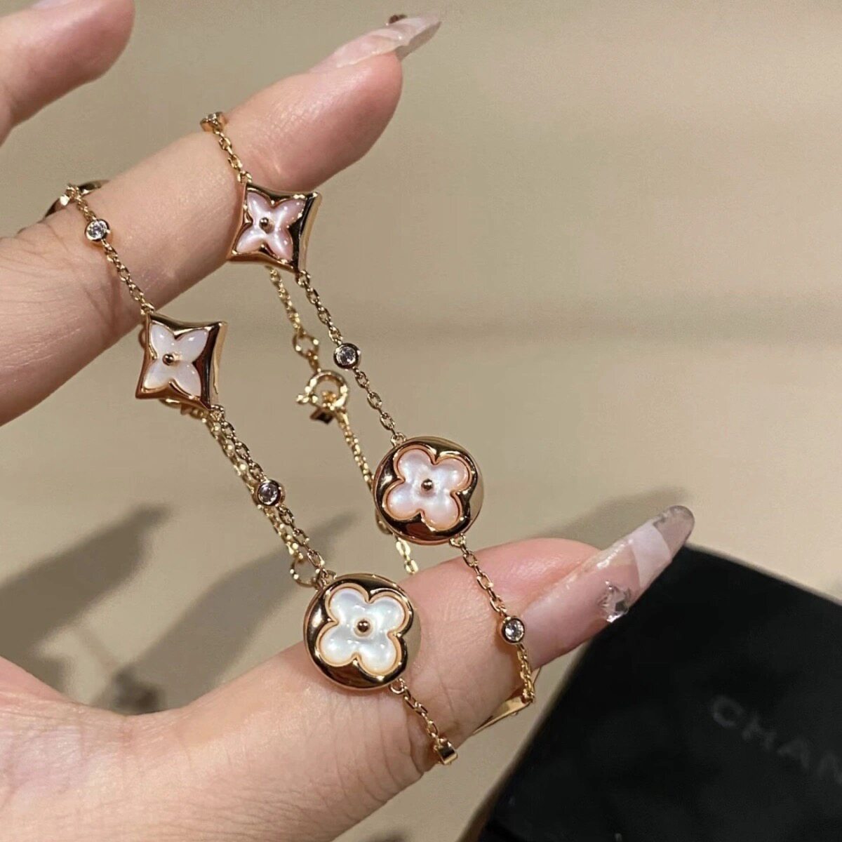 高版本菱形贝母天河石镶钻四五花手链女18K玫瑰金轻奢小众四叶草