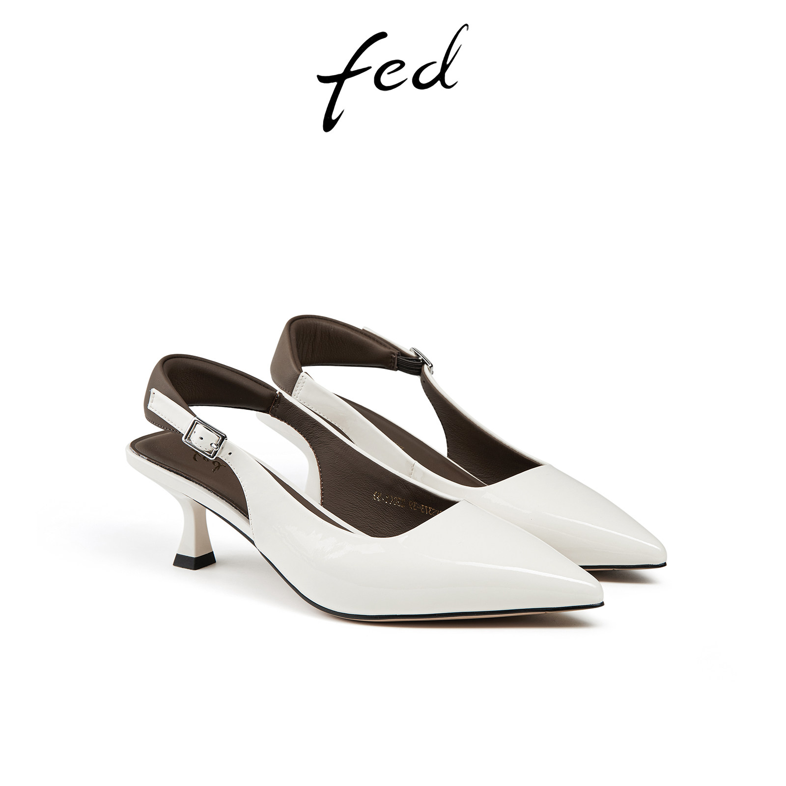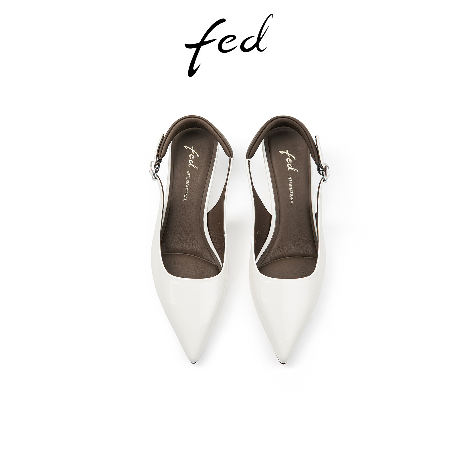 fed尖头真皮单鞋夏季新款女鞋低跟通勤鞋法式凉鞋女款D0401-ZC373