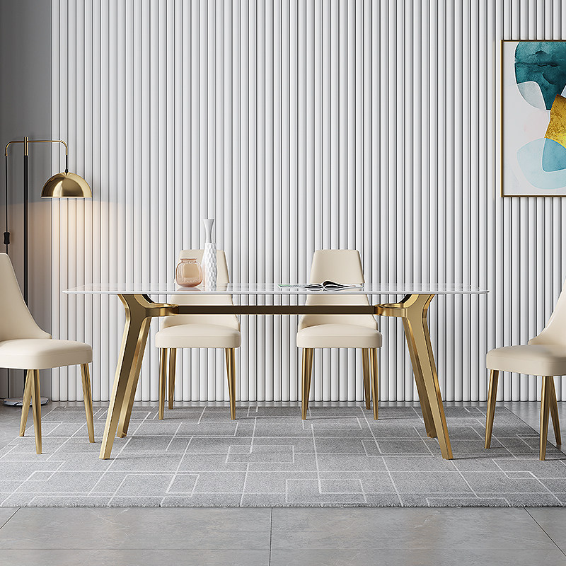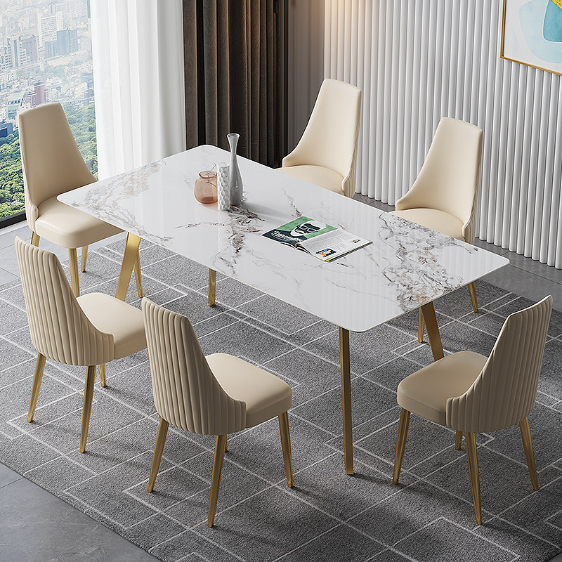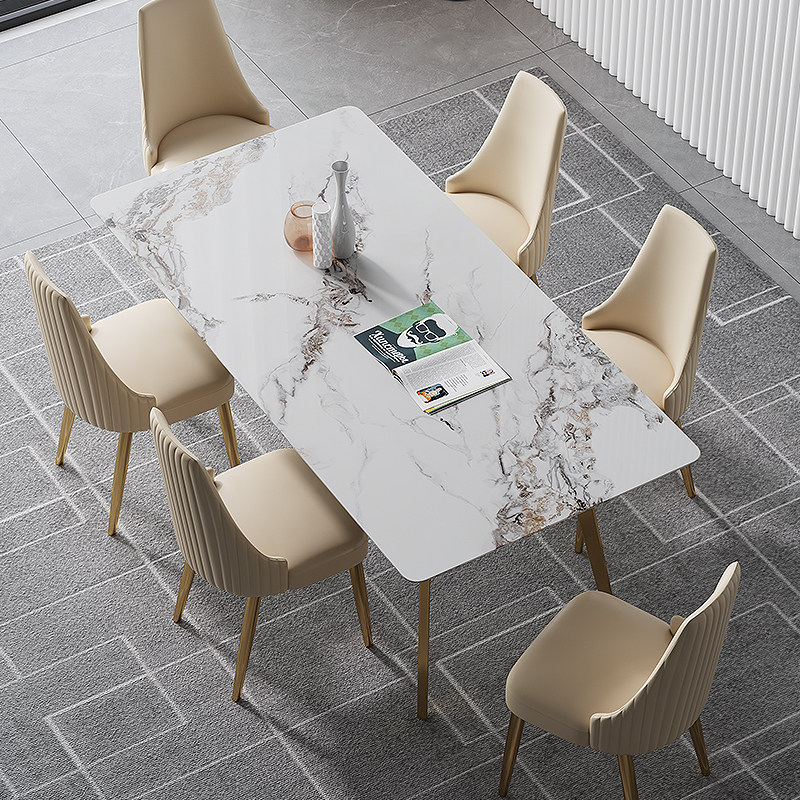 亮光岩板餐桌轻奢现代简约家用小户型大理石饭桌潘多拉岩板餐桌椅