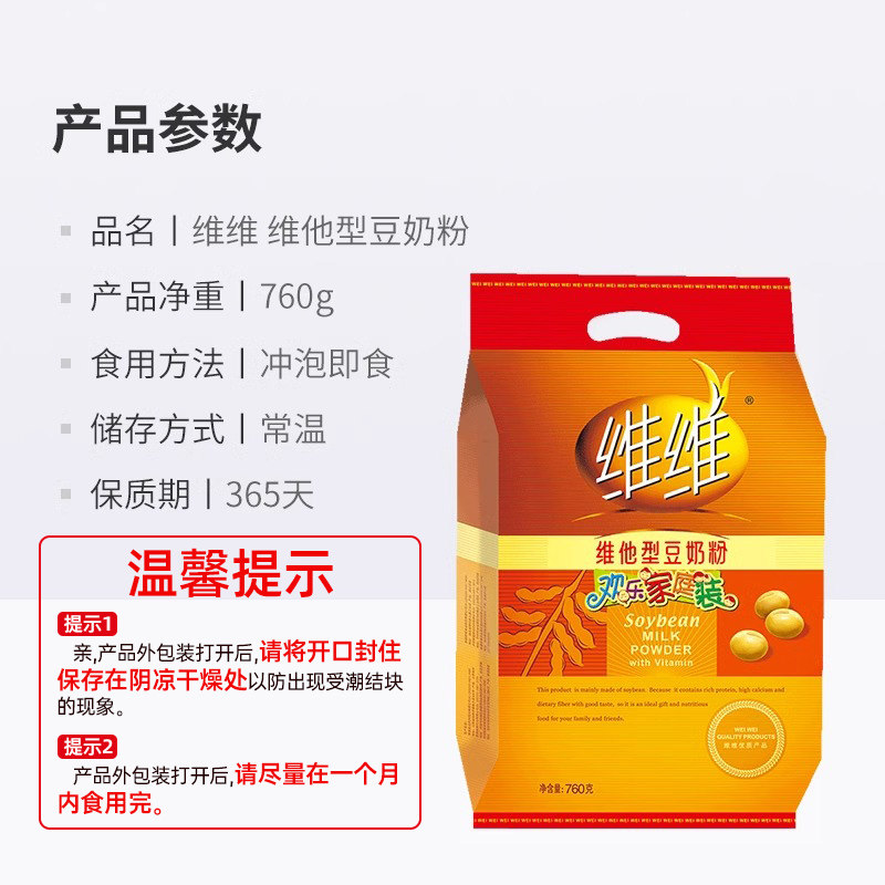 维维豆奶粉760g*3袋装维他型家庭装营养早餐冲饮代餐粉冲泡电动