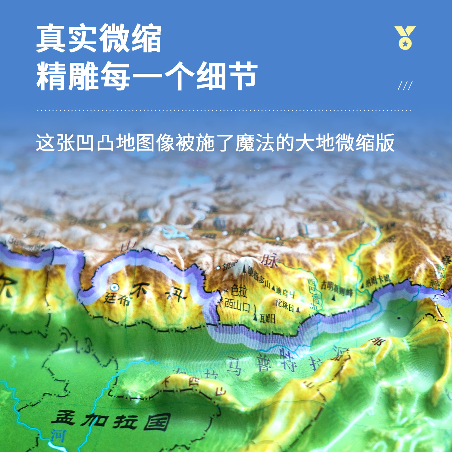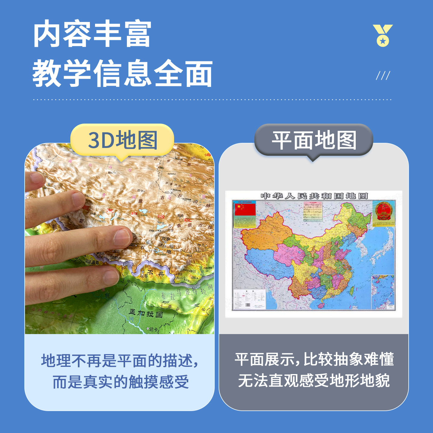 【晨光地形】2025世界地形和中国地形地图共2张3d立体凹凸地形图浮雕地图挂图 初高中学生用地理教学家用墙贴