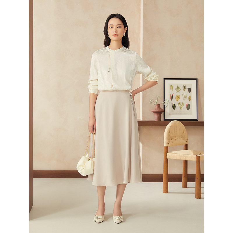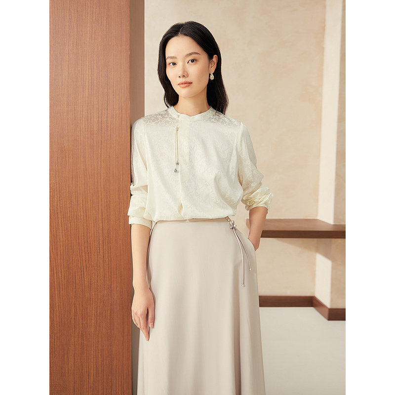 YINER音儿2025春季新款新中式流苏盘扣提花立领桑蚕丝真丝女上衣